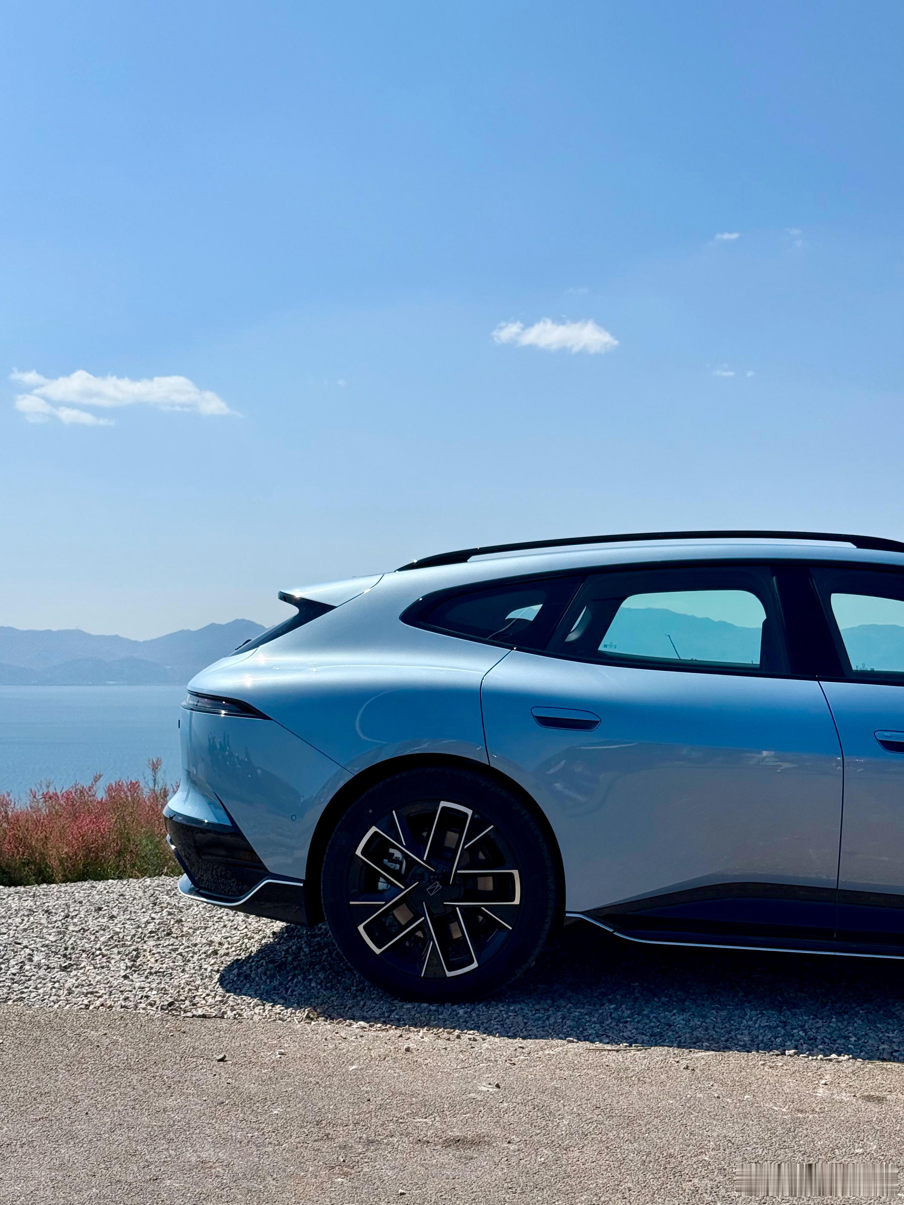 之前去试驾过,晴蓝实车好好看啊,颜色特别亮眼,往那一停就是一处风景。而且动力特别足,尤其是三电机四驱的版本,超900匹马力,零百加速2.78秒,底盘也特别有韧劲,既舒适又运动,跑山过弯的时候支撑性挺不错的。