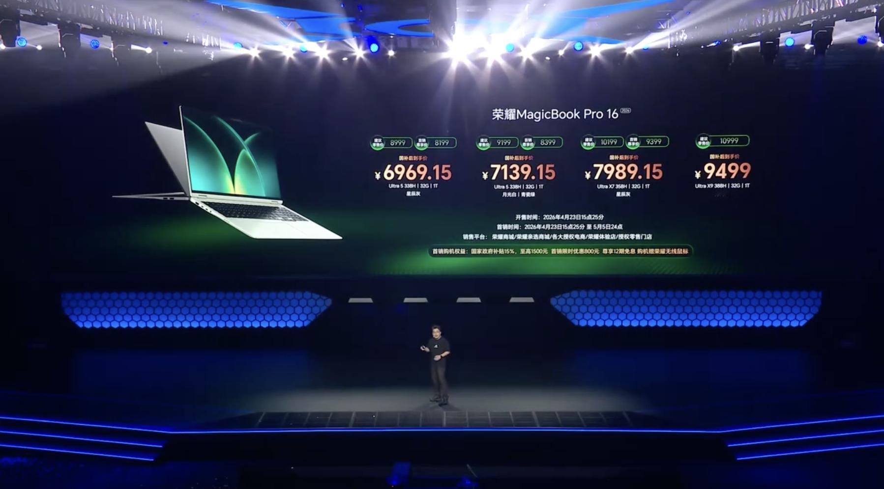 荣耀PC家族的新品价格:荣耀WIN游戏本H9到手价9999起荣耀WIN游戏本H7到手价7819起荣耀MagicBook Pro 14到手价6799起荣耀MagicBook Pro 16到手价6969起荣耀MagicBook X14 Plus到手价5099起荣耀MagicBook X16 Plus到手价5269起