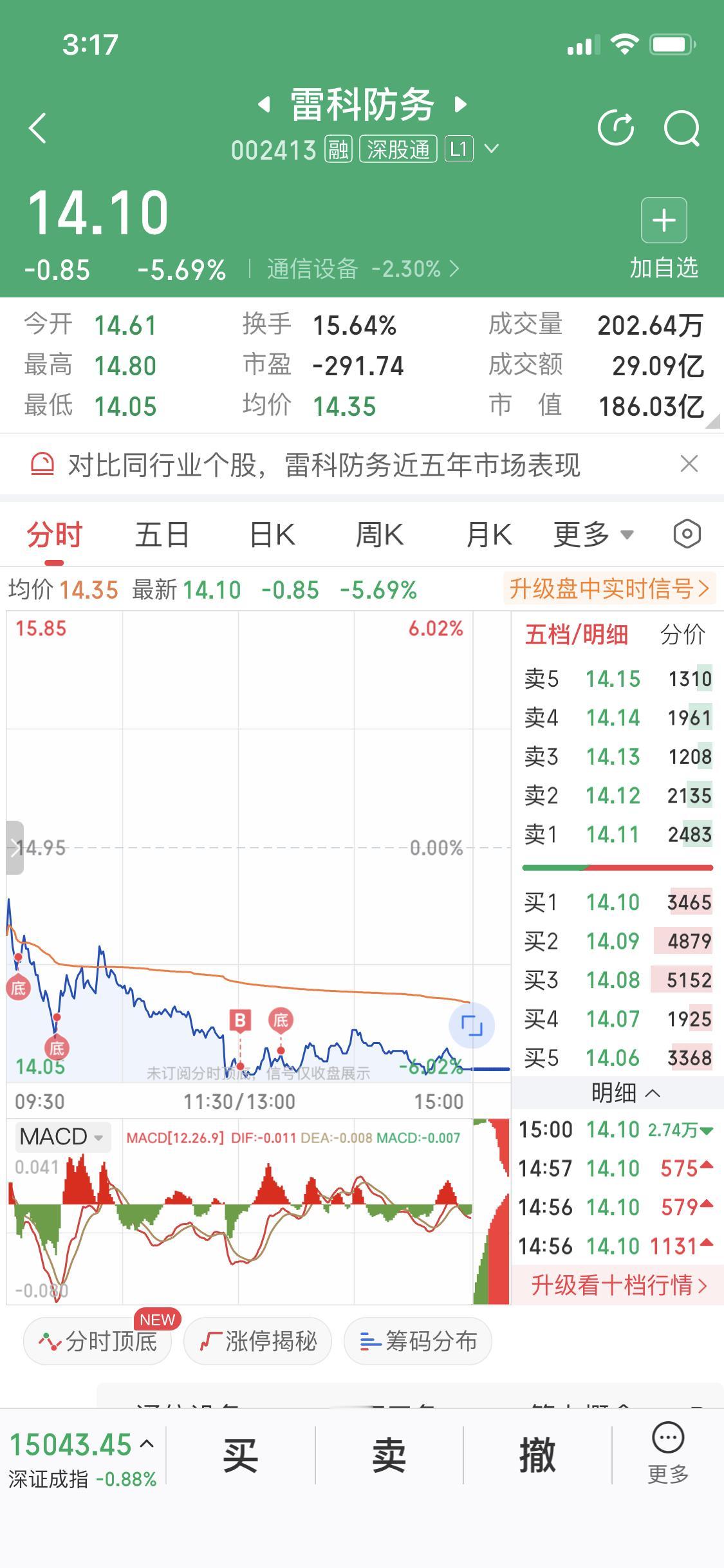 今天大盘下跌 而且是放量下跌 主力在调仓换股 高切低 资金从CPO出来,到低位品种 对于我手里拿着的低位人形机器人,低位商业航天我觉得是利好 今天雷科恰好跌到五日线止跌了我把章钨清仓了 加仓雷科 赌的就是雷科明天阳包阴