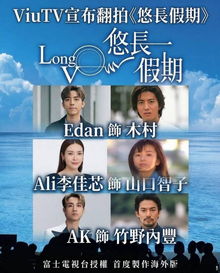 翻拍版《悠长假期》据说已经获得富士电视台授权,木村拓哉的角色将由Mirror成员吕爵安Edan出演,山口智子演的叶山南这次交棒给了李佳芯,而竹野内丰的角色则由Mirror另一成员AK江烨生完成。除开这几个人够不够班对应原有阵容,李佳芯的归属也很值得注意。因为ViuTV本身也是免费台,自创立以来一直和TVB对打,这次出演《悠长假期》还是有不少媒体写她是视后,顶着TVB给的荣誉光环去ViuTV当女主角,硝烟味还蛮足的。