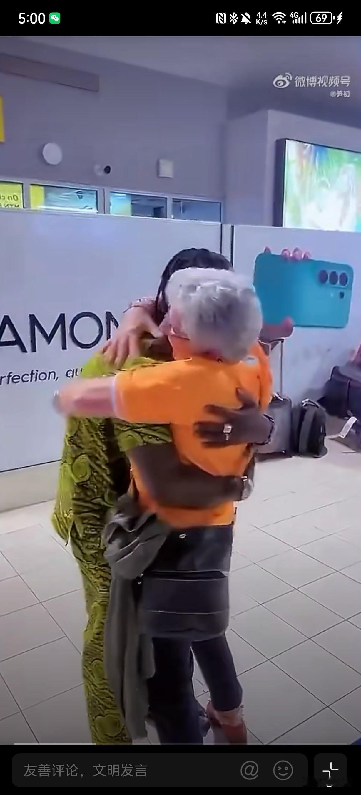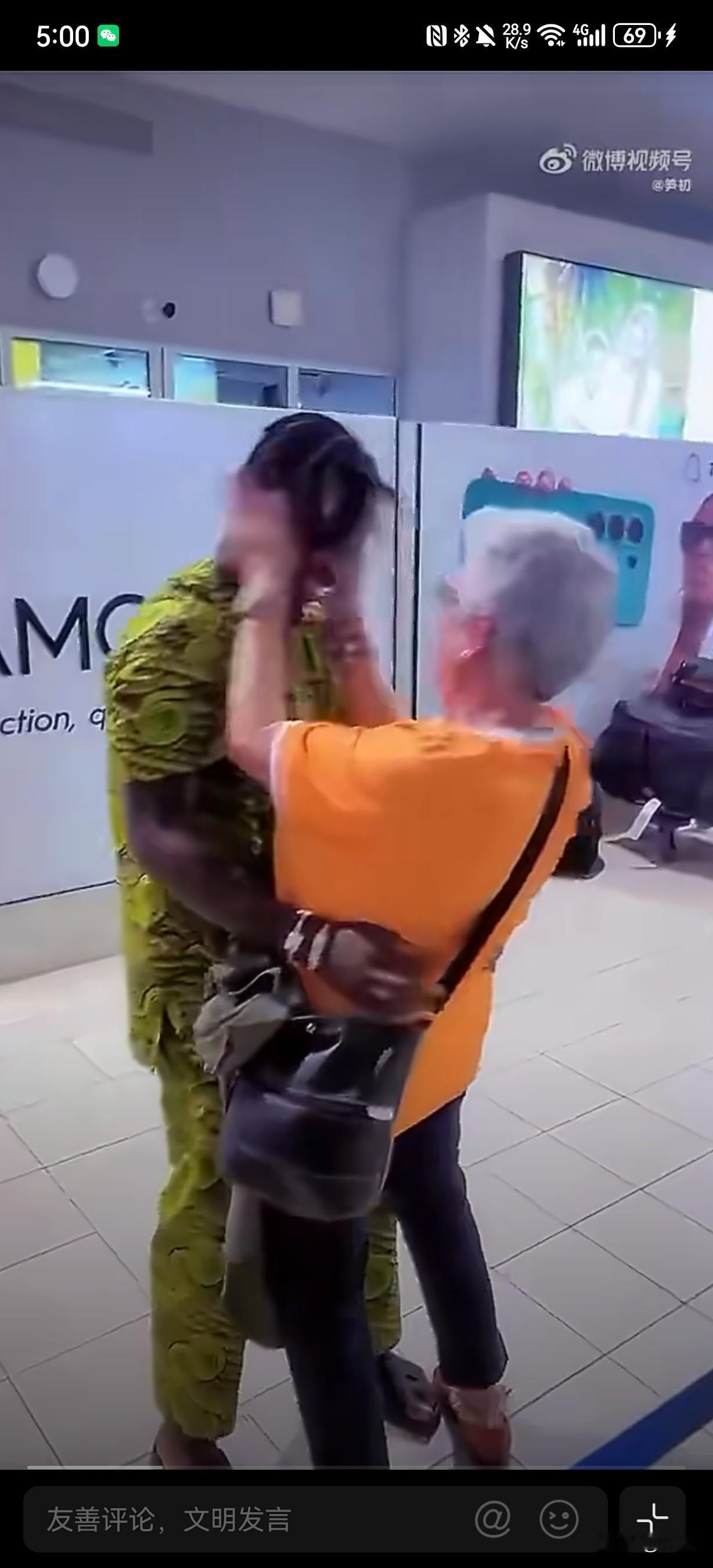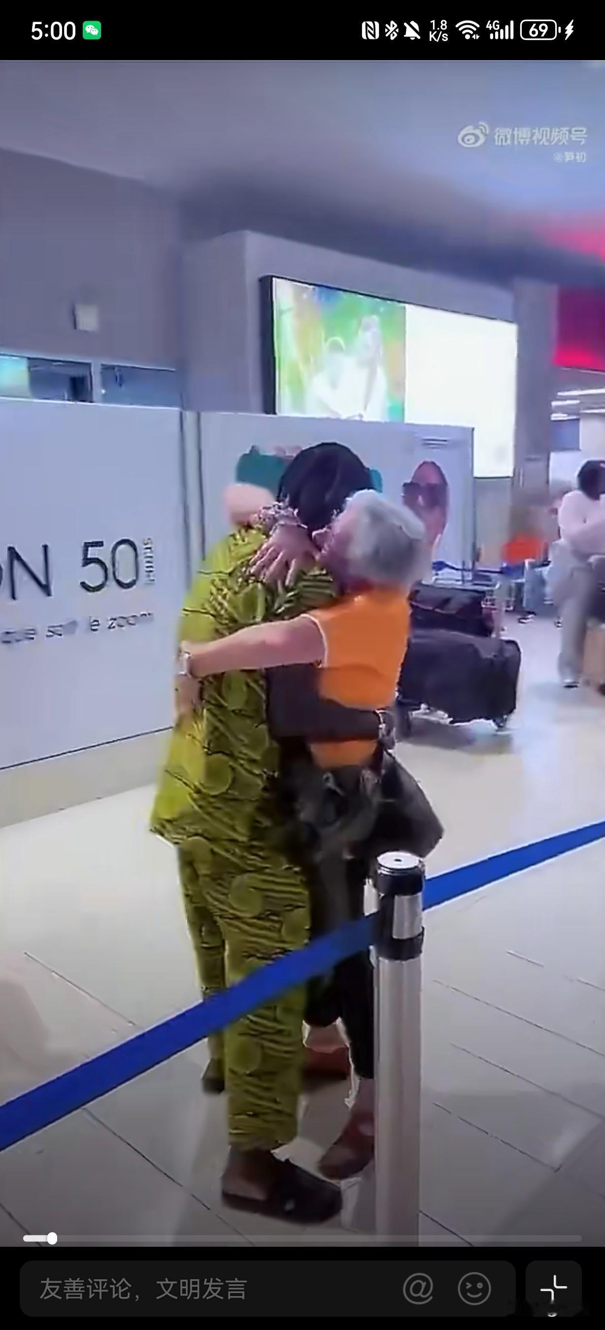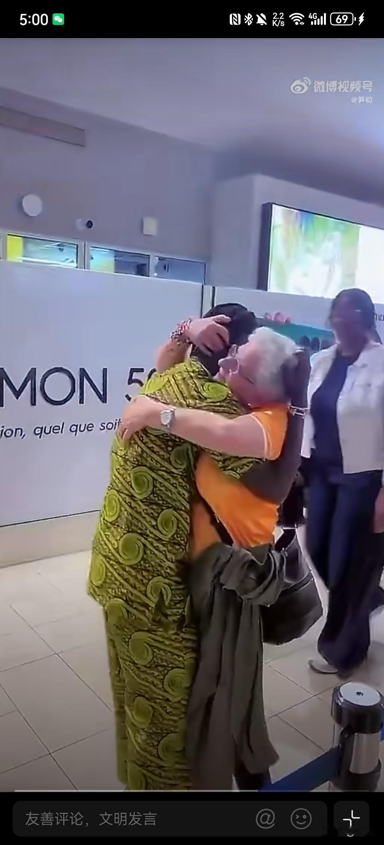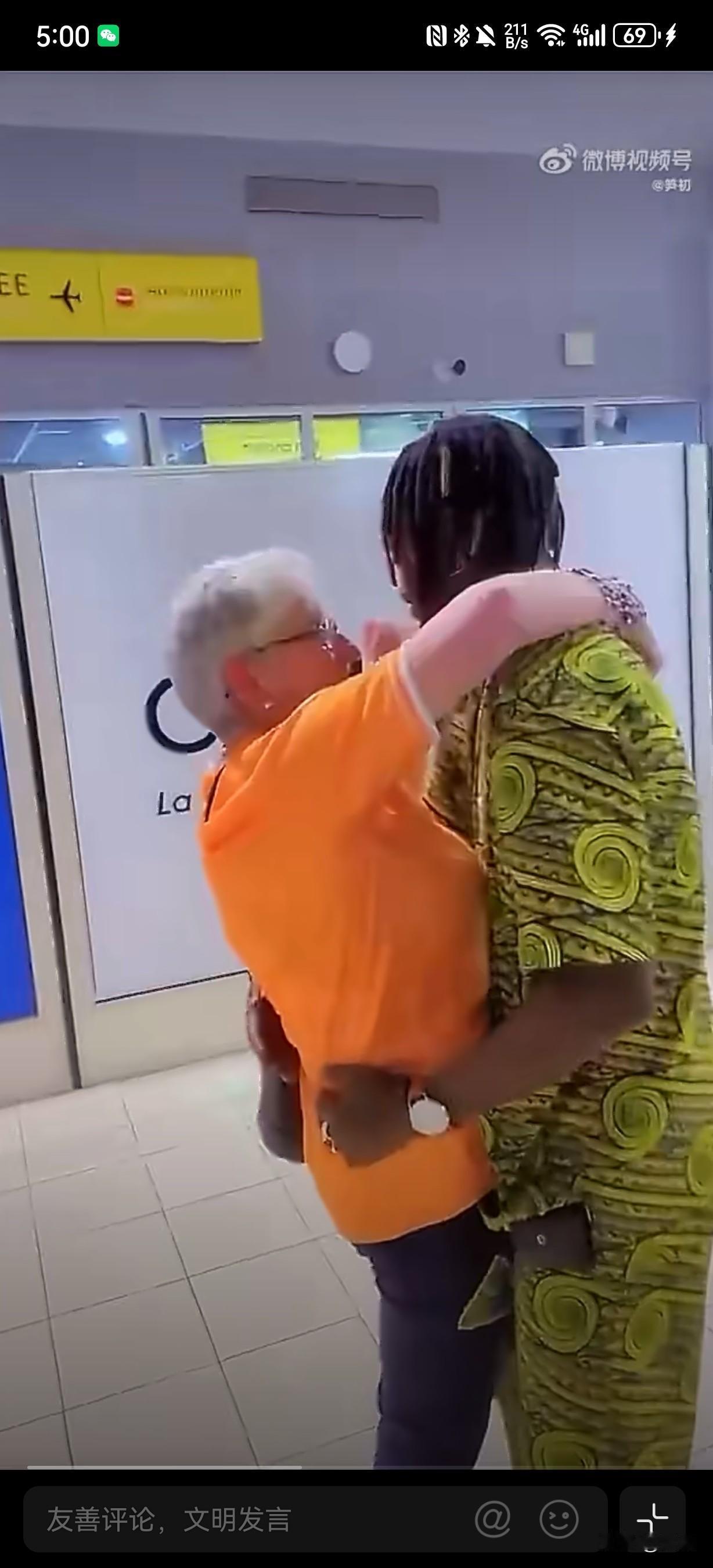 一名法国的老妇人在机场热情迎接网恋已久的科特迪瓦男友。 恭喜法国又多了一位年轻的“生”力军!