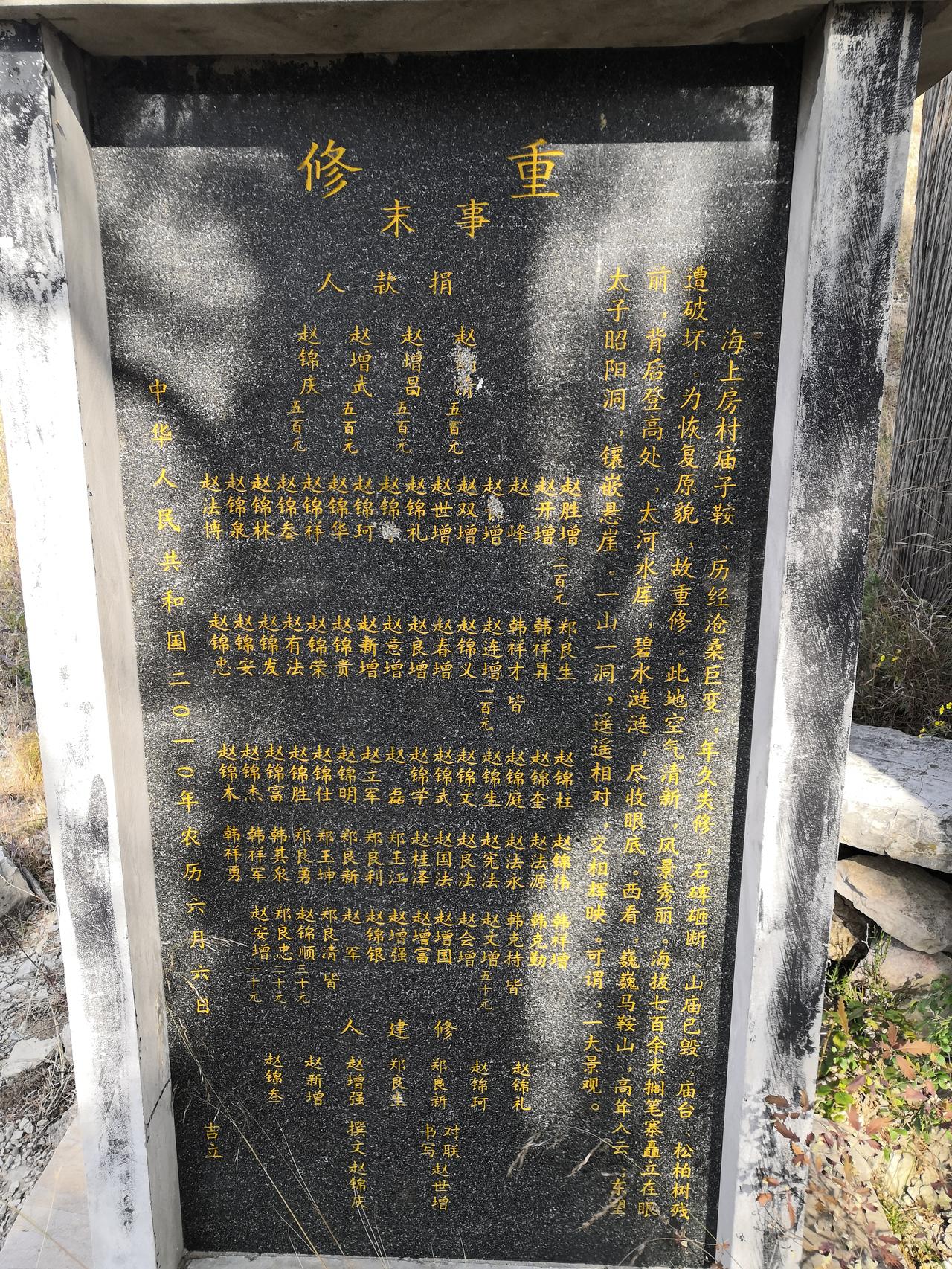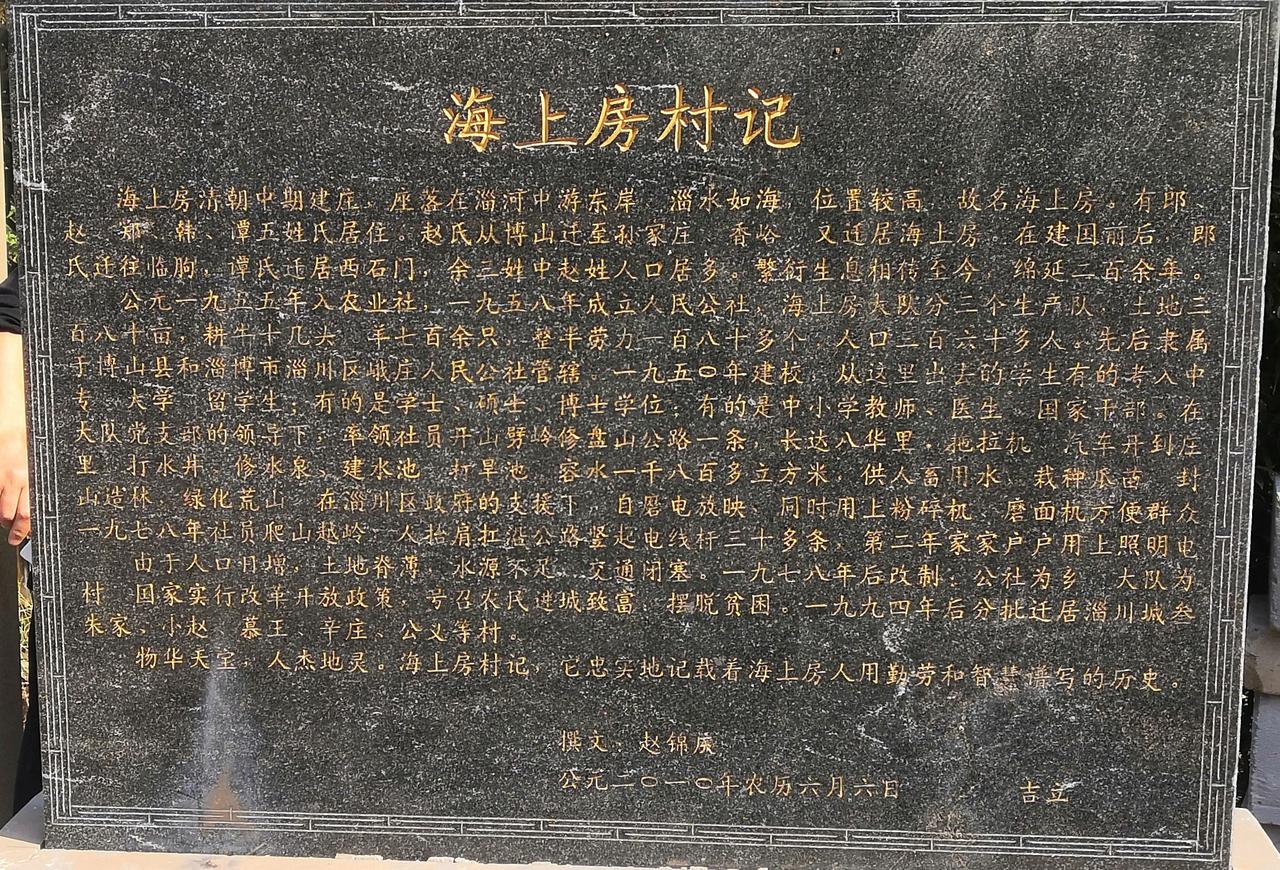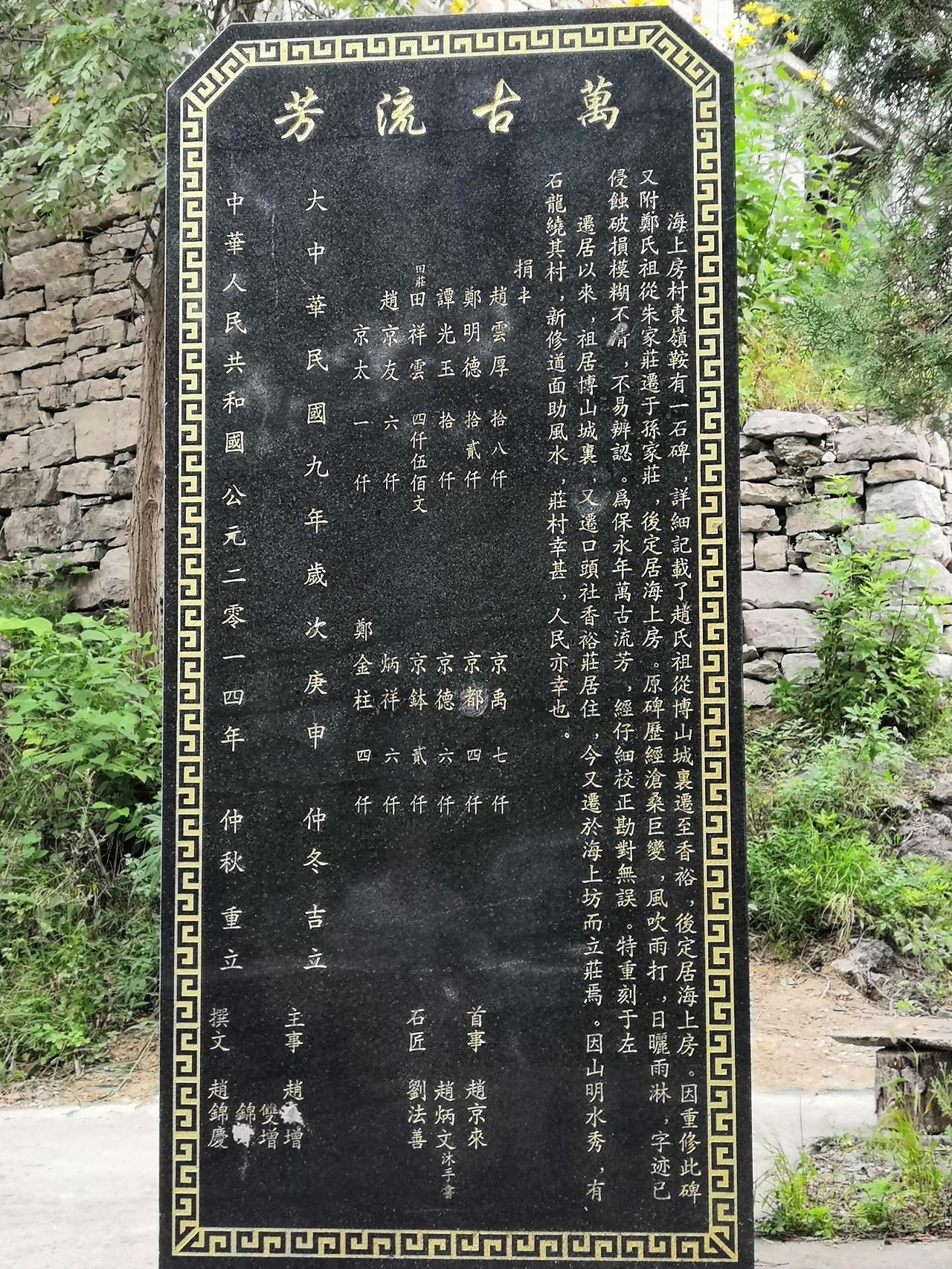跨越时空的文化接力 一一赵炳文赵锦庆祖孙与海上房碑文石刻 在山东省淄博市淄川区太河镇(原峨庄乡)的海上房村东岭鞍的北侧平台上,静立着一块老旧石碑。碑身历经风雨,碑面斑剥,其上镌刻的文字,记载着赵氏、郑氏家族与一个山村、一方水土多年来的血脉相连与文化传承。这石碑,以及与之相关的村里村外数块石碑的碑文,共同构成了赵炳文赵锦庆祖孙为海上房村留下的深刻文化印记,它们如同一部石刻的村史,默默诉说着村庄的变迁、文化的坚守与文脉的流淌。 故事的开端,要追溯到民国九年(1920年)。时年,赵炳文沐手恭书,在东岭鞍石碑上留下了最早的迁徙记录:“迁居以来,祖居博山城里,又迁口头社香峪庄居住,今又迁于海上房而立庄焉,因山明水秀,石龙绕其村,新修道面助风水,庄村幸甚,人民亦幸也。” 这段文字简洁朴实,却蕴含了赵氏、郑氏家族乃至早期其他姓氏村民选择海上房作为新家园的缘由——山水秀美,新修道路,村庄兴盛有望。这不仅是一段地理迁徙的记录,更是一份对未来生活的美好期许与奠基宣言。 两年后的民国十一年(1922年),赵炳文为本族赵氏先茔撰写碑文,其内容更为详实丰富。它记述了赵氏家族自博山迁居孙家庄,再定居海上房的历程,“相传至今绵延有百余年矣”。文中流露出深厚的家族情感与乡土责任感:“户口日增,支派日分,念一木同源之情,动春露秋霜之思。”他追溯源流,并特别记载了财祖长孙赵永明“栽柏树,率家族筑堰墙、修理坟茔”等善举,强调“并垂诸石,俾后世有所考云”。 这篇碑文超越了单纯的家谱记载,上升为一种自觉的文化存史行为,旨在将家族的奋斗与对乡土的贡献铭刻于石,传之后世,供后人考证瞻仰。此外,赵炳文还撰写了“海上房庙子鞍山神庙及庙台重修碑记”, 其对村中公共文化设施的关注,体现了其文化视野已从家族延伸至整个村落共同体。 时光流转,村里几处石碑在自然风雨与岁月侵蚀下逐渐破损,文字模糊。到了二十一世纪初,赵炳文之孙赵锦庆会同村里的有识之士承担起了文化传承与修复的重任。他仔细校对了祖父撰写的碑文,“仔细校正勘对无误,特重刻于左”。 这一行为本身,就是一次跨越时空的文化接力。赵锦庆不仅全録了其祖父记载村庄迁徙历史的碑文,更在新的时代背景下,为海上房村撰写了多篇具有当代意义的碑文。 2010年6月,赵锦庆撰写了“海上房村记”、“庙子鞍重修碑记”。 他在碑文中描绘了“庙子鞍历经沧桑变迁,年久失修,石碑砸断,山庙已毁,庙台、松柏残遭破坏”的境况,继而阐述了重修的意义。其笔触充满了对家乡自然与人文景观的热爱与赞许:“此地空气清新,风景秀丽,海拔700余米搁笔寨矗立在眼前,背后登高处,太河水库碧水涟涟,尽收眼底。西看,巍巍马鞍山,高耸入云;东望,太子朝阳洞,镶嵌悬崖。一山一洞遥遥相对,交相辉映。可谓一大景观。” 这篇碑文将修复古迹与赞美家乡山水融为一体,赋予了文物保护以情感温度和审美价值。 赵锦庆的另一贡献,是撰写了《海上房村记》碑文。 该碑文系统记载了海上房村民艰苦创业,不畏艰难治山治水的情况,记载了村庄的经济社会发展变化,记载了村民的生活状况、教育文化、民俗民风以及“修建公路,架设电线,兴修水利,建设学校,培养人才,改变穷山恶水落后面貌”的集体奋斗史。 这篇碑文堪称一部浓缩的现代村志,它不再局限于家族叙事,而是全景式地展现了整个村庄在特定历史时期的经济、文化、社会建设与精神风貌,成为海上房村一段不可或缺的集体文化记忆。 从赵炳文在民国初年铭刻家族迁徙与根脉于石碑,到赵锦庆在二十一世纪为重立(新立)石碑撰文,记述村庄自然景观与现代发展历程,祖孙二人先后近百年通过碑文石刻,完成了一场跨越时空的文化书写和文脉传承。这些石碑,不仅是石头上的文字,更是热爱家乡情感的载体、历史的见证和文脉的物化。它们串联起家族个体与村庄集体的命运,连接了传统定居文化与现代文明建设历程,从“因山明水秀”的择居智慧,到“治山治水”的改造实践,从对“同源之情”的家族维系,到对“村庄文化记忆”的集体珍视,文化一脉相承,又随时代发展而不断丰富拓展。 如今,当人们驻足海上房村,面对这些石碑时,不仅能读到村民的创业发展故事,更能触摸到整个村庄从过去走向现在和未来的脉搏。赵炳文、赵锦庆祖孙以其笔墨与责任担当,将这些故事刻于石碑之上,使其得以抵御时间的冲刷,成为海上房村永恒的文化财富与精神坐标。他们祖孙跨越近百年的文化修为和接力,生动诠释了何为文化的守护者与传承者——让历史不被遗忘,让文脉得以流淌,让一方水土的记忆,在金石之上获得不朽,成为永恒。 丙午仲春 赵新法谨记于淄博慧心斋