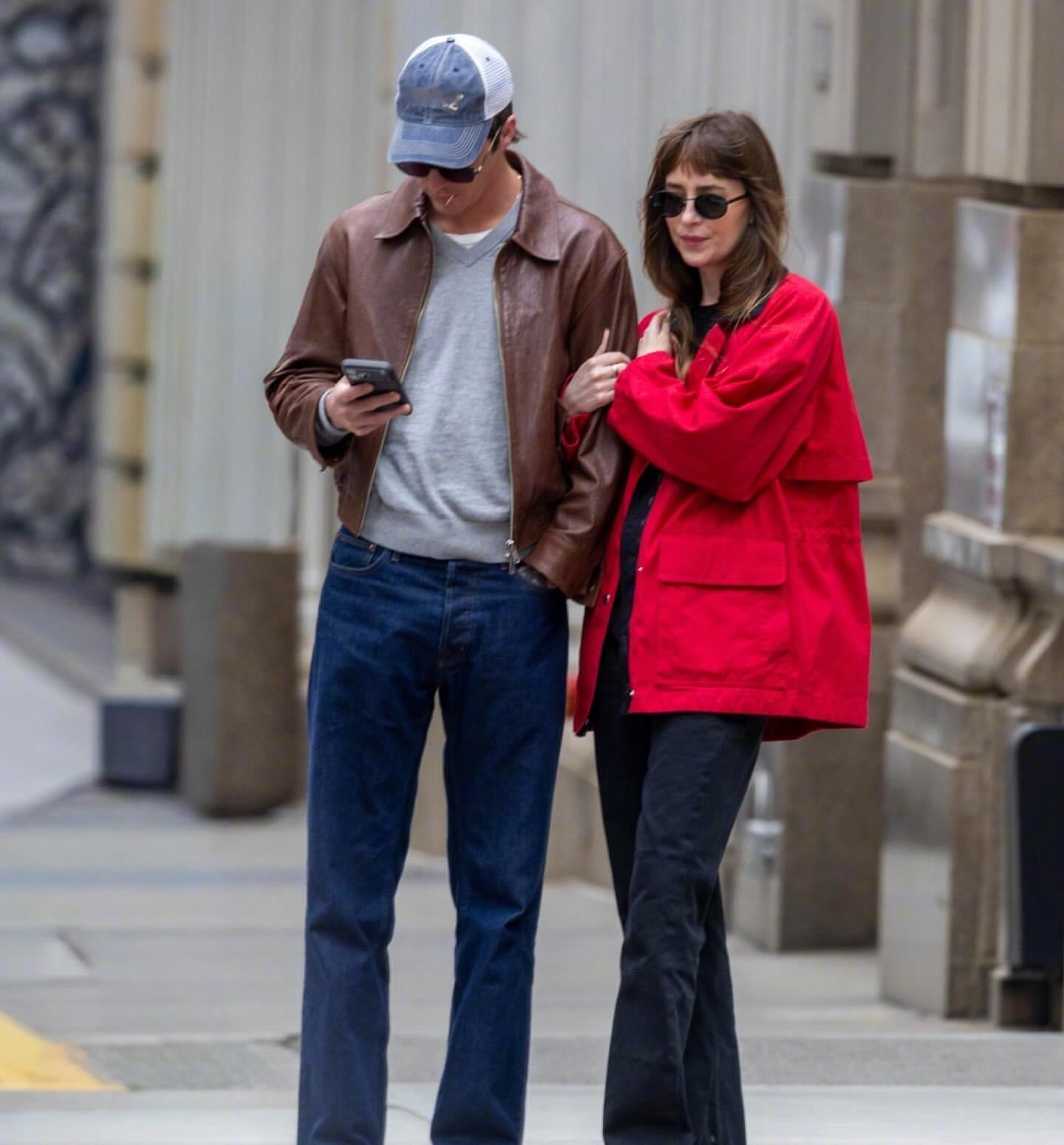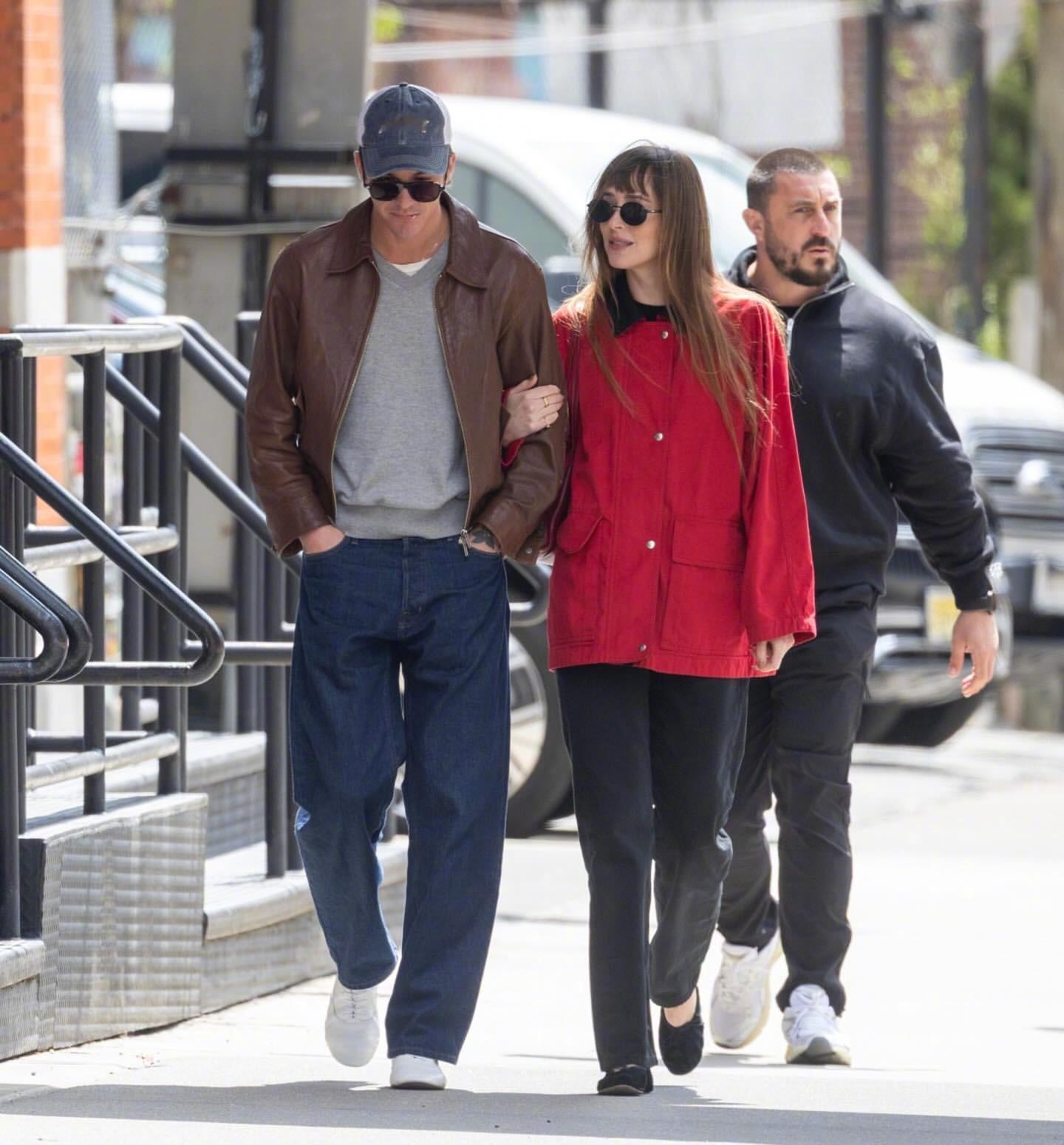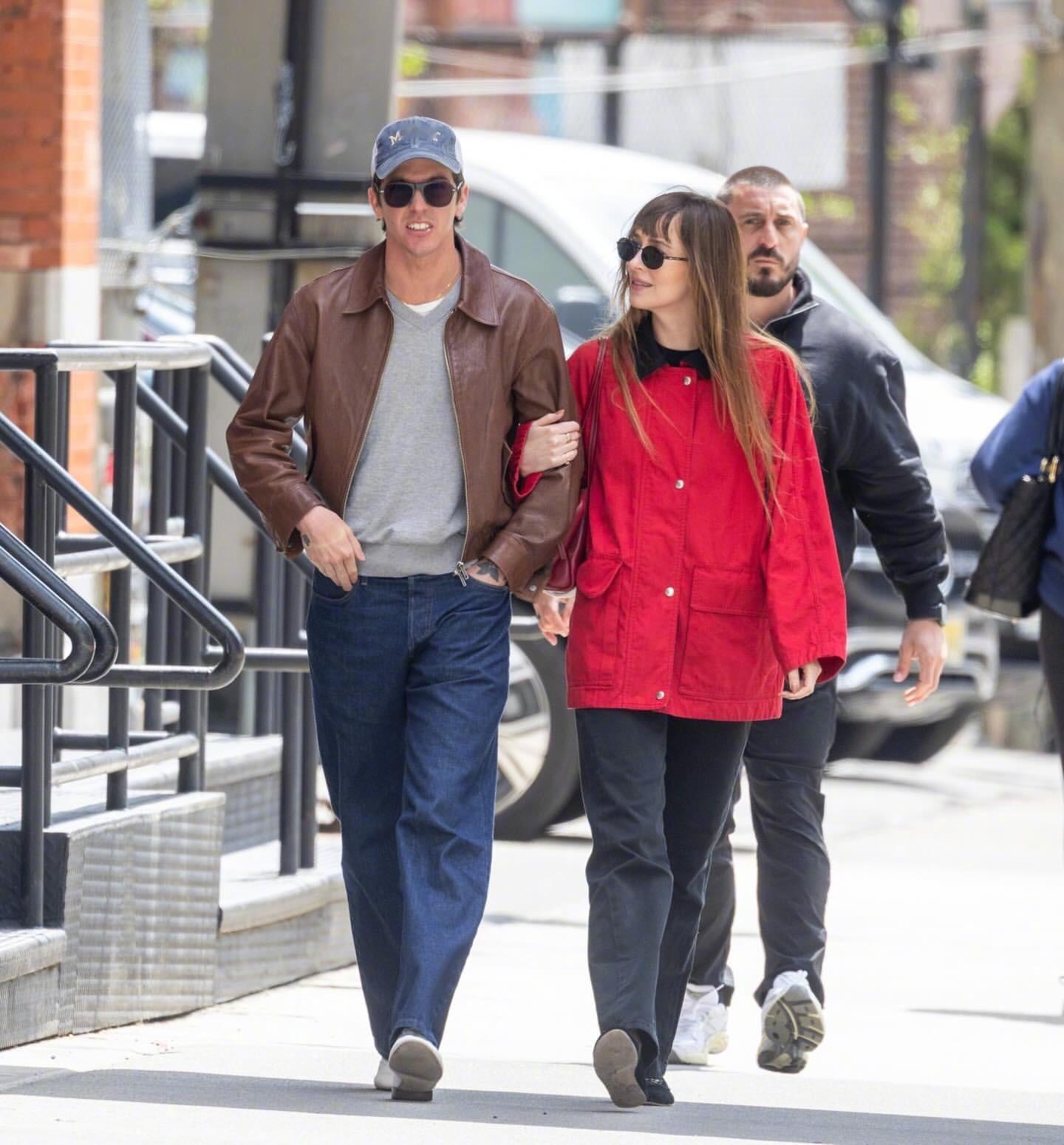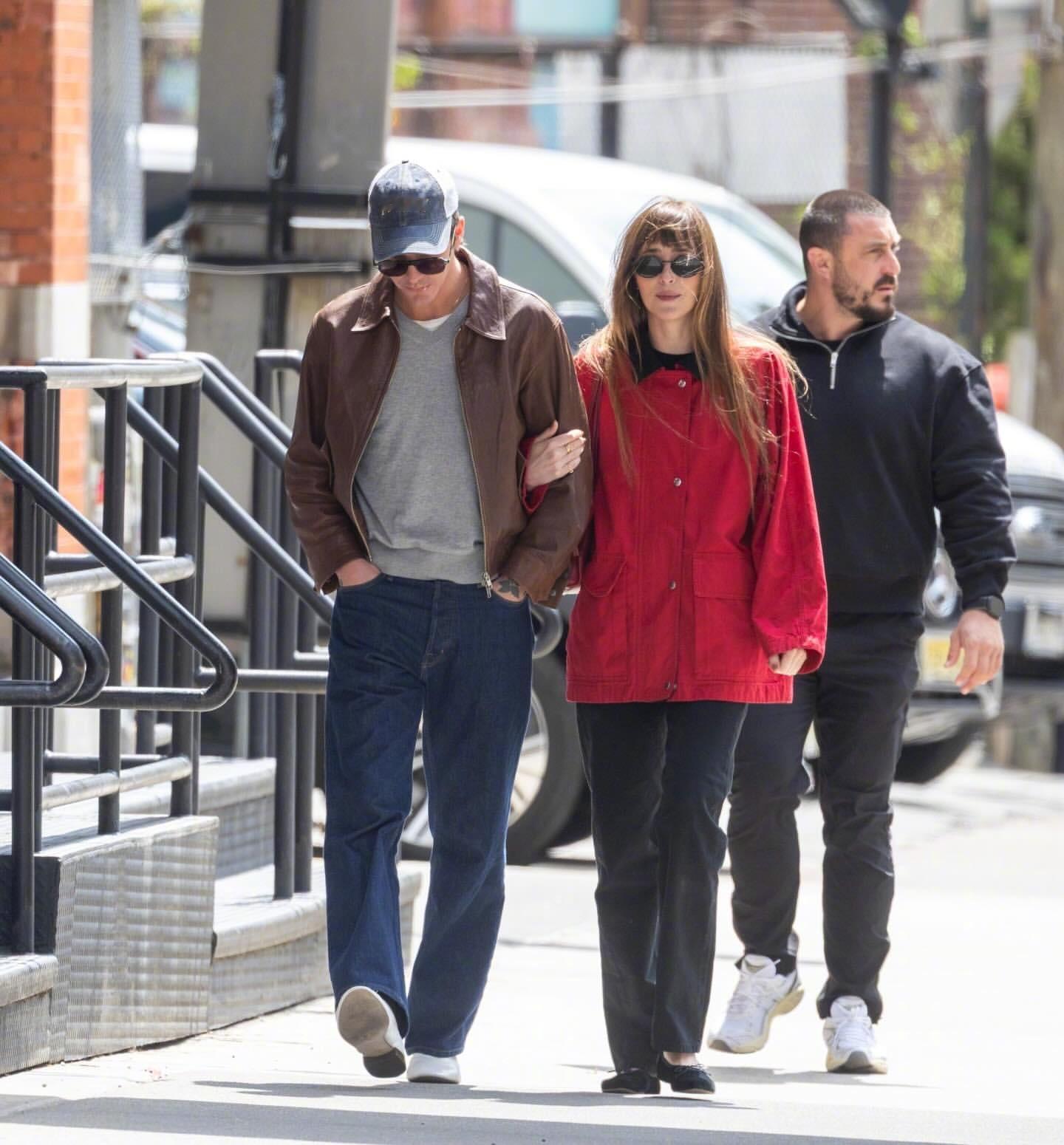 达妹 Dakota Johnson 又和小男友Role Model(Tucker Pillsbury)一同出现在纽约街头。达妹最近很爱红色,红色外套、红包、芭蕾平底鞋都出自The Row,AGOLDE高腰直筒牛仔裤,佩戴Prada 墨镜和卡地亚耳环。米拉服饰解析