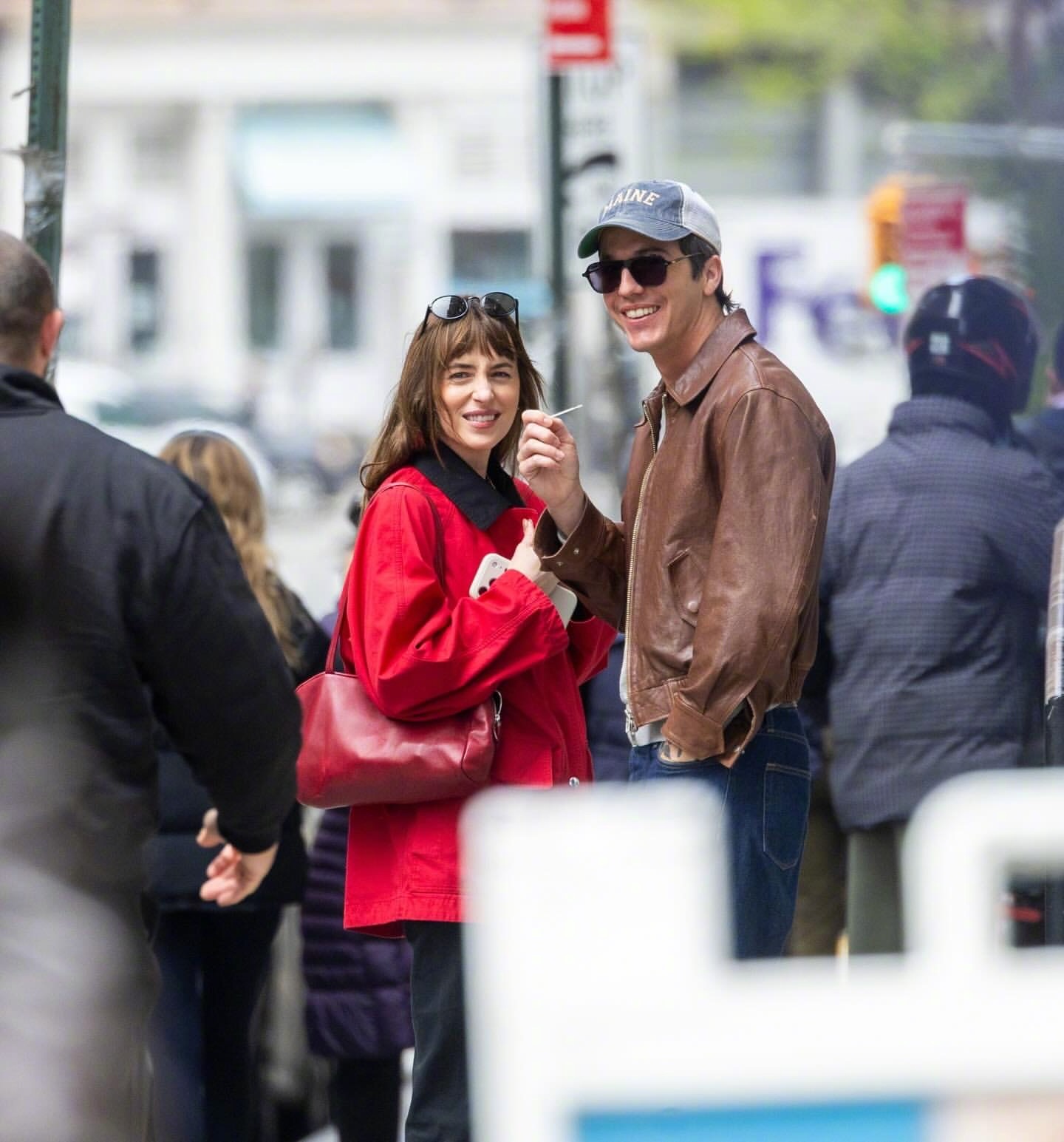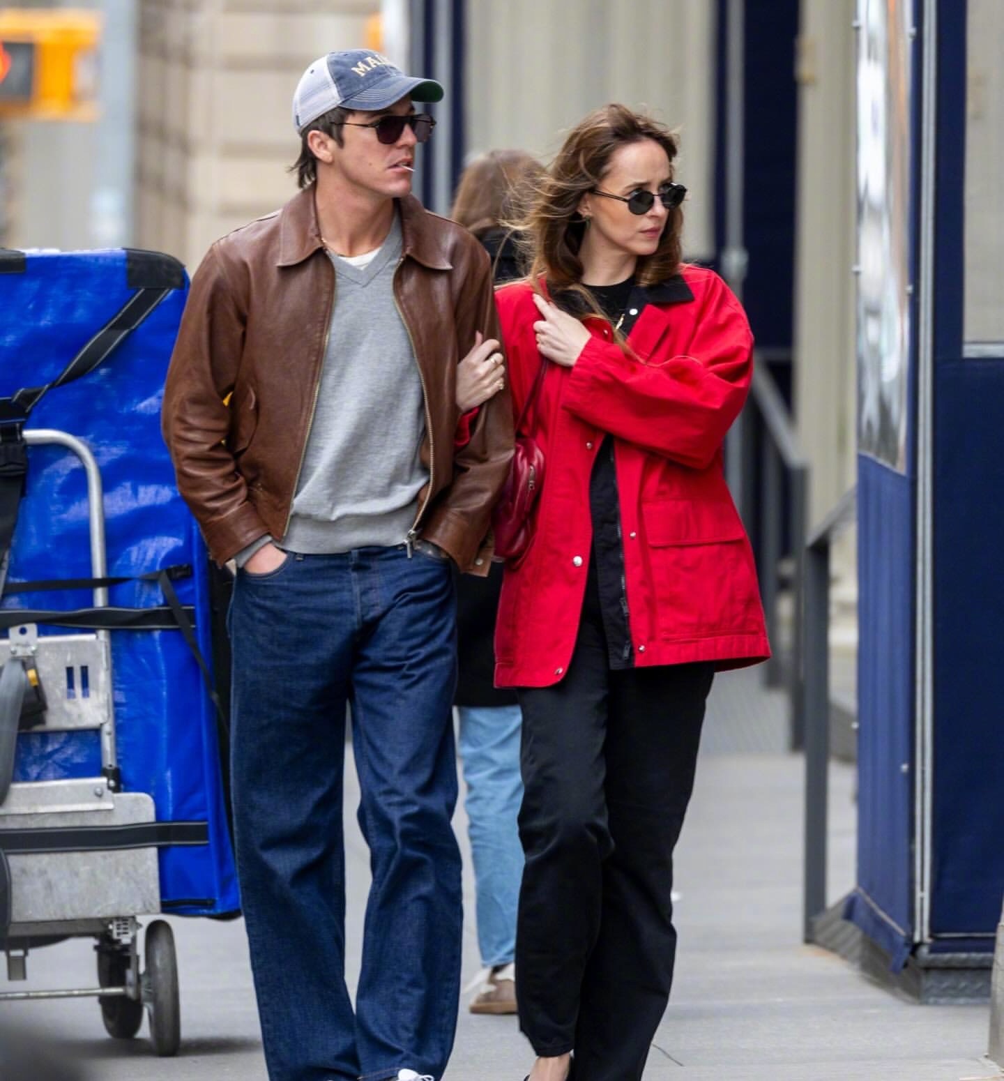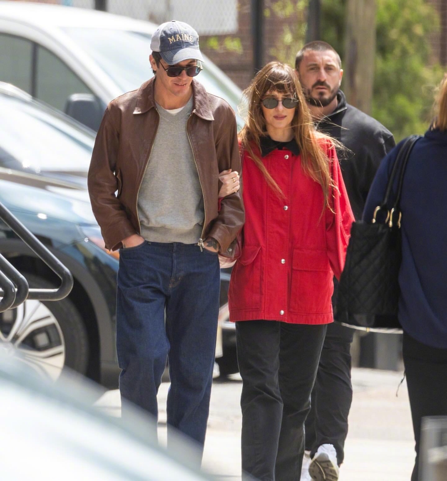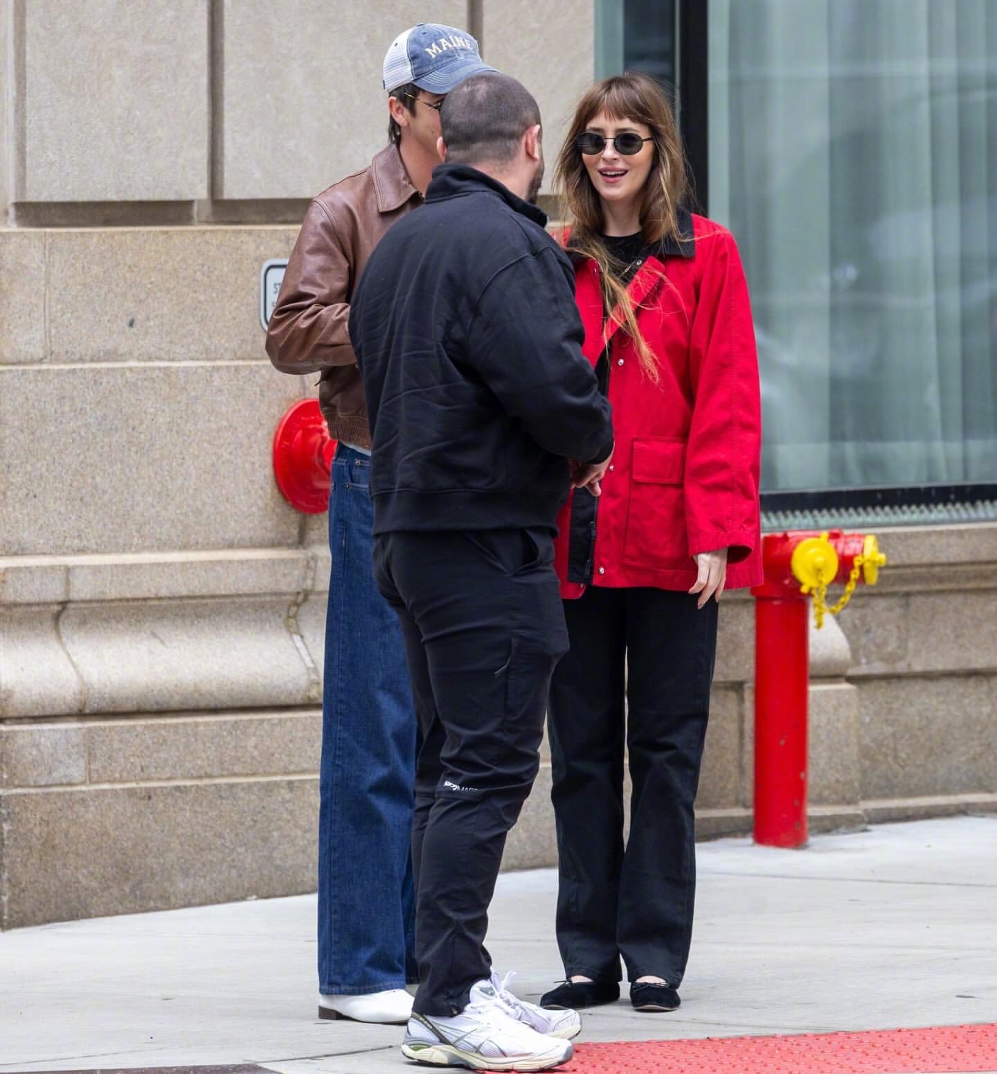 达妹 Dakota Johnson 又和小男友Role Model(Tucker Pillsbury)一同出现在纽约街头。达妹最近很爱红色,红色外套、红包、芭蕾平底鞋都出自The Row,AGOLDE高腰直筒牛仔裤,佩戴Prada 墨镜和卡地亚耳环。米拉服饰解析