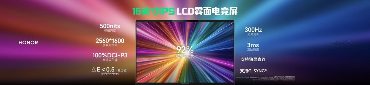 刚刚发布的荣耀WIN游戏本 H9,16吋LCD 300Hz屏幕畅玩游戏体验感会更理想,搭载新一代荣耀绿洲护眼技术,能够达到500nits亮度和100%DCI-P3专业级色域,雾面屏幕确实降低反光,而且还支持3D游戏防眩晕技术,对于晕游戏的小伙伴们来说,确实提升游戏时候的体验感