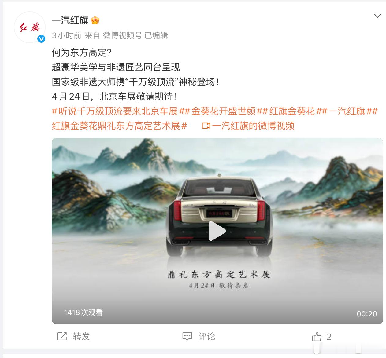 听说千万级顶流要来北京车展顶流,不一定靠流量,也可以靠手艺和时间。红旗金葵花这次把湘绣、云锦、大漆、珐琅这些非遗工艺带进北京车展。中国超豪华,也可以有自己的审美和价值体系。话说今年车展,超豪华品牌只有红旗金葵花一个独苗,红旗金葵花也是中国唯一超豪华品牌。