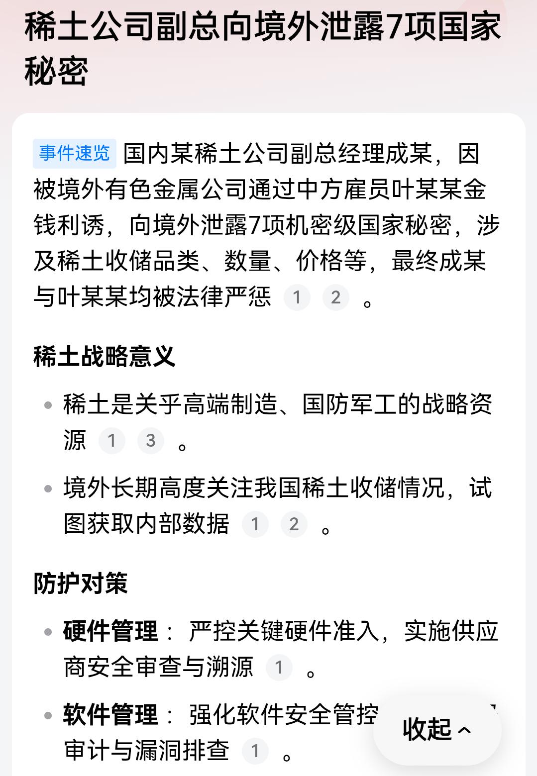 泄密者造成的损失有多大?内鬼害国,散户买单! 谁能想到?今天A股直接被一记“暗箭”砸懵了——稀土板块全线暴跌,清一色5%起步,有的甚至直奔跌停!无数散户盯着绿油油的账户,心都在滴血,直呼“亏麻了”。 要知道,稀土可不是普通板块,这是咱们在中美博弈最关键的时候,手里攥着的一张“王炸”!别人求着要、抢着争,咱们本该握着主动权,可偏偏在这节骨眼上,后院起火了——不是外部敌人太厉害,而是家里出了唯利是图的内鬼! 你可能不知道,这波稀土板块暴跌的背后,藏着一起让国家安全部门都拍案而起的泄密大案。就在全民国家安全教育日刚过没几天,国家安全部刚披露了一个细节,某稀土公司的副总经理成某,被境外势力用51万美元就收买了,前后10多次把7项国家机密打包送了出去。 这7项机密可不是什么无关痛痒的文件,而是我国稀土收储的品类、实际储备数量、官方定价标准、指令性生产计划、招标节奏、中标企业名单这些核心战略内容,每一项都扎在国家的命门上。 可能有人会说,不就是几个数据吗?能有多大损失?你要是这么想,可就太天真了。稀土这东西,名字听着土气,却是现代工业的“维生素”,更是国防军工的“心脏”。一架F-35战斗机要0.4吨稀土,一艘宙斯盾驱逐舰要2.4吨,没有它,再先进的武器都得变成废铁。而中国手里攥着的,是全球80%以上的中重稀土储量,92%的精炼加工份额,这是我们在中美博弈中为数不多的几张绝对王牌之一。 可现在呢?这张王牌的底牌被人掀了个底朝天。想象一下,你跟人打牌,手里的大王小王和所有牌型都被对手摸得一清二楚,你还怎么打?境外势力拿到这些数据,就能精准预判我们的收储节奏、价格调控方向,甚至能提前布局,在国际市场上跟我们玩“价格战”“库存战”,把我们的战略主动权一点点蚕食掉。 短期看,今天稀土板块集体大跌,股民们亏得血本无归,这只是看得见的损失。但真正可怕的,是看不见的长期危害。这些泄密数据,会让美国等西方国家更快地调整他们的稀土战略,加速构建所谓的“去中国化”供应链。要知道,美国国防部去年已经破天荒地入股了MP Materials公司,购入15%股份,还承诺高价长期包销其产品,就是想摆脱对中国的依赖。 更让人脊背发凉的是,这已经不是第一起稀土泄密案了。国家安全部早就警告过,境外间谍情报机关和背景复杂的机构,长期觊觎我们的稀土产业,用各种手段搞情报窃密、技术攫取和矿产窃取。 有把稀土混入瓷砖原料偷运出境的,有虚报成分含量伪报品名的,还有像成某这样被金钱直接拉下水的高管。几十年的猫捉老鼠,已经让这些唯利是图的内鬼摸清了门道,他们知道哪些信息值钱,知道怎么规避监管,甚至形成了一条完整的利益链条。 你可能会问,这些内鬼到底图什么?成某的案例很能说明问题,他把卖国家机密的钱,全花在了妻女境外生活开支和自己的奢侈消费上。51万美元,在他眼里可能是一笔巨款,但在国家战略安全面前,连九牛一毛都算不上。可就是这一点点私欲,却让国家几十年的战略布局、无数科研人员的心血,都面临付诸东流的风险。 有人觉得我们有完善的保密制度,有严格的监管措施,不怕这些内鬼作祟。但现实是,再严密的制度,也挡不住人心的贪婪。成某作为稀土公司的副总经理,本该是守护国家机密的第一道防线,结果却成了泄密的“突破口”。这说明,我们的保密教育、监督机制,还有很多需要完善的地方。 现在最让人担心的,不是美国的围堵,而是内部的瓦解。就像当年以色列王国因为内部分裂而灭亡一样,我们的战略资源安全,也正面临着“内鬼”这个最大的威胁。这些人拿着国家的俸禄,却干着损害国家利益的勾当,把民族的未来当成自己谋取私利的筹码,这种行为,必须受到最严厉的惩罚。 好在,国家安全部门已经开始行动了。成某和他的同伙叶某某,一个被判了11年,一个被判了11年6个月,算是得到了应有的报应。但这只是开始,要彻底清理这些内鬼,还需要更完善的制度、更严格的监管、更深入的教育,让每一个接触国家机密的人都明白,守住秘密,就是守住国家的未来。 今天稀土板块的大跌,是给我们敲响了警钟。它告诉我们,在中美博弈的大棋局中,我们不仅要面对外部的挑战,更要警惕内部的蛀虫。这些看不见的敌人,比美国的航母战斗群、比西方的经济制裁,更具破坏性。因为他们能在不知不觉中,毁掉我们最核心的战略优势。 散户们今天的损失,虽然让人痛心,但也换来了一个重要的提醒:国家安全,从来都不是一句空话,它与我们每个人的利益都息息相关。如果我们不能守护好自己的战略资源,如果我们不能清理掉这些唯利是图的内鬼,那么未来,我们可能会付出更大的代价。 让我们用最严厉的法律,最严密的监管,最深入的教育,筑起一道坚不可摧的防线,守护好我们的战略资源,守护好我们的国家安全,守护好我们每个人的未来。