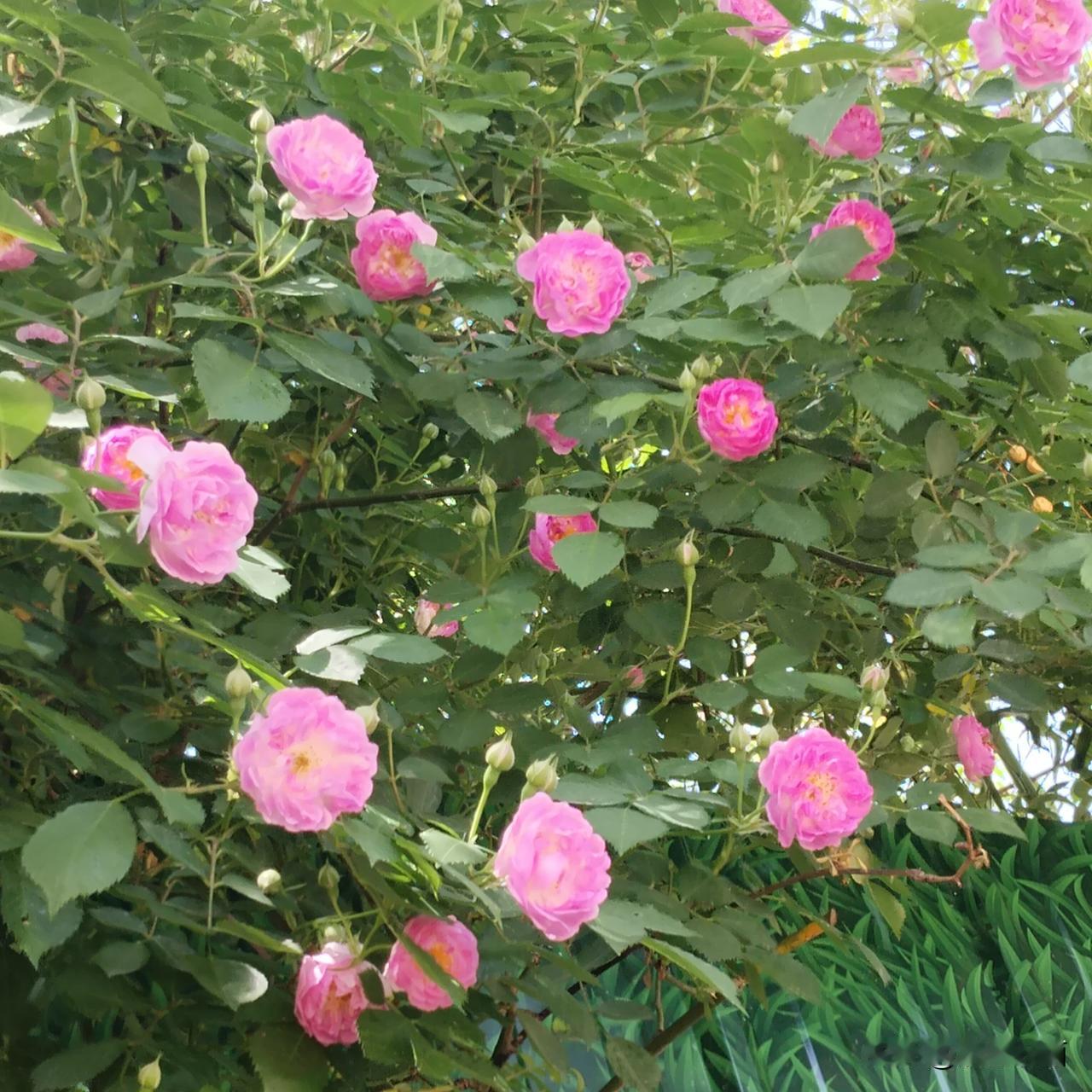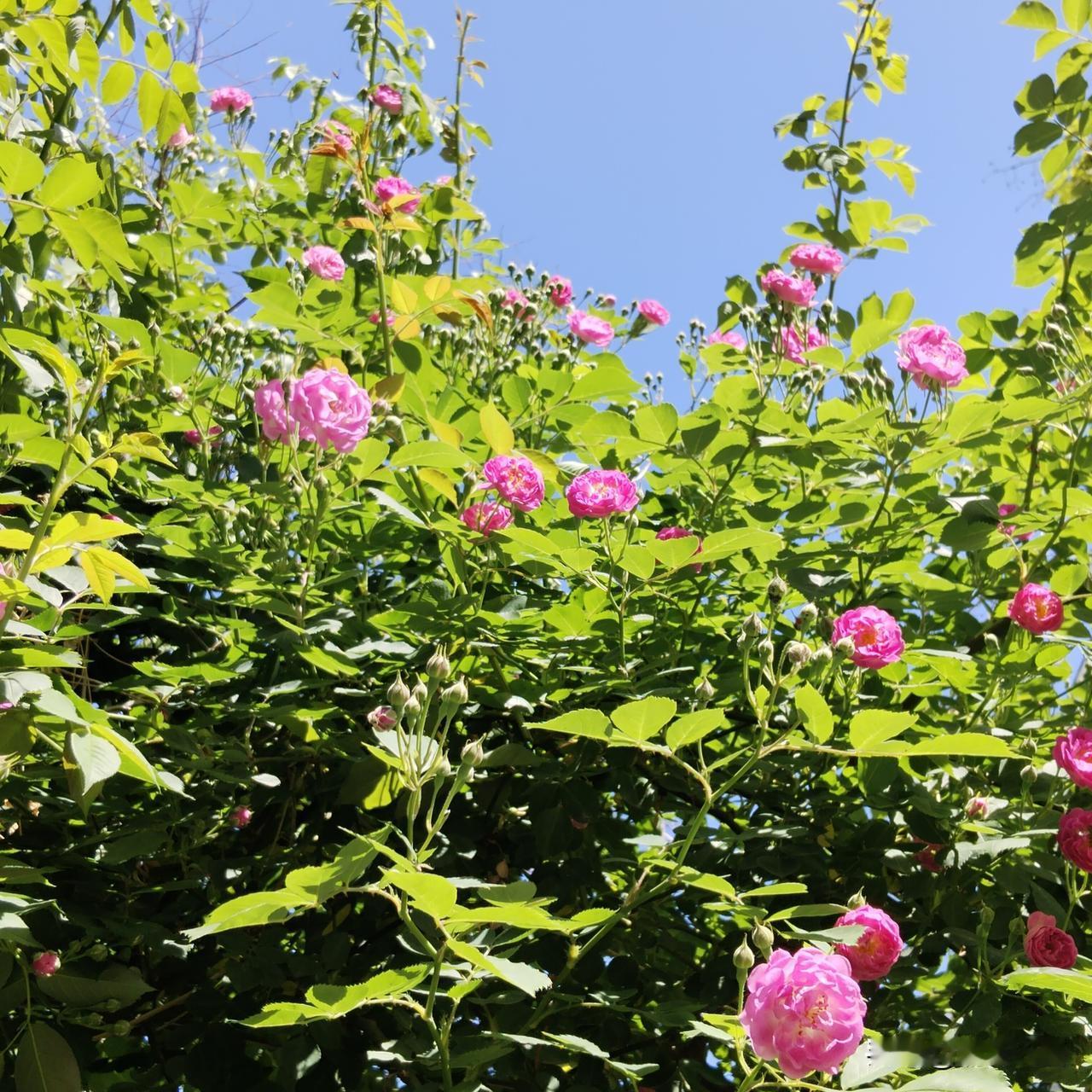 我住的地方蔷薇花装点着围墙,花太多太多了,野蛮地生长着。 我一个人看着,嗅着,风过花摇曳,蜜蜂只顾采蜜,也不会蜇我。 这让我想起家乡的那条老路,两边的野蔷薇花密密实实犹如两道高大厚重的铜墙铁壁,这条路正好是西面进入村子里的必经通道,它们如同哨兵一样检查过往的陌生人,也是我经常玩的地方,离我家很近。 那时孩子时期的我,没有一点恐惧,我们彼此太熟悉了,蔷薇顶出花朵的时候,我天天摘几支花带回家插到花瓶里,没人干涉我,我把花摆在八仙桌上的,父母看到笑一笑,又各自忙着自己的事。 那是我自由自在的时光,觉得花美人美,人人那么可亲,天天洋溢着笑。认识我的人逗逗我,村里不认识我的人问:这是谁家娃娃长得这么好看? 家乡的那两面蔷薇花墙早已经不在了,路虽然比原来宽广亮堂,像城里的一样,但我没有一点眷恋感,心里一直记着儿时的蔷薇花墙。 我摘了几支带回家,插在花瓶里,像回到儿时一样。