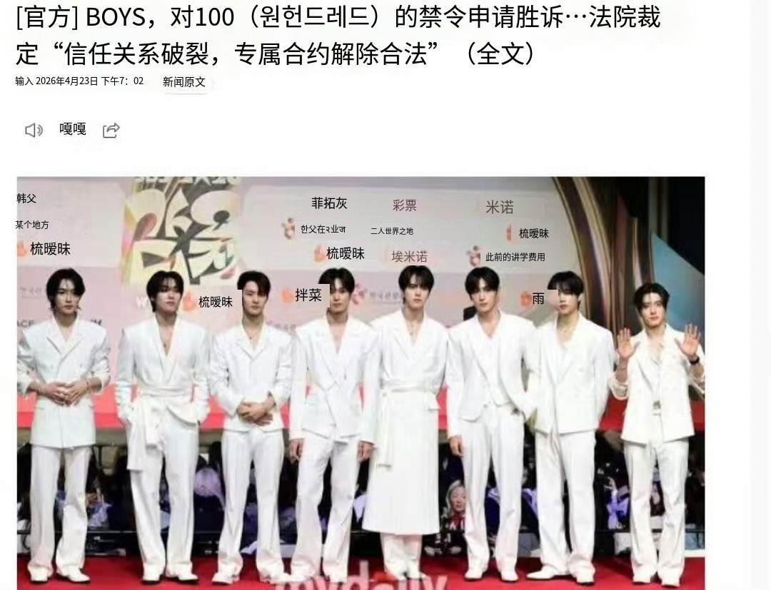THE BOYZ成功解约了!据韩媒,法院于今日作出决定,准许THE BOYZ向经纪公司100 Label提出的专属合同效力停止的临时处分申请。THEBOYZ成功解约THEBOYZ解约胜诉了