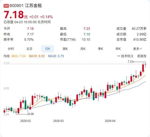 江苏金租2025年年报正式出炉:营收61.09亿增长15.75%,净利32.41亿增长10.12%! 4月23日晚间,公司正式披露2025年年报,扣非净利润32.19亿元,同比增长11.73%,盈利质量同步改善。公司拟以57.92亿股为基数,每股派发现金股利0.17元(含税),合计派现9.85亿元。叠加2025年中期已派发的7.53亿元,全年合计派现17.38亿元,占归母净利润比例达53.62%,延续高分红传统。 业绩稳健增长的驱动力来自资产规模扩张与净利差走阔的双击! 2025年前三季度数据显示,公司融资租赁资产余额达1524.25亿元,同比增长19.14%,保持强劲扩张态势。租赁业务净利差3.75%,较上半年进一步走扩,负债端成本下降是主要驱动——预计H1负债平均成本率仅2.24%,同比大幅下降67个基点。资产质量持续优化,不良率0.90%较年初有所下降,拨备覆盖率高达403%,风险抵补能力充足。 对公司而言,最大的看点是高股息率下的配置价值! 按4月23日收盘价5.19元计算,全年每股派0.30元(中期0.13元+期末0.17元),股息率约5.78%,在低利率环境下配置价值突出。公司"3+N"行业结构有效对冲细分行业周期风险,清洁能源、高端装备、交通运输三大板块引领增长,并积极拓展AI算力租赁、低空经济等X个创新领域。32.41亿净利是"现在时",近6%的股息率才是"将来时"——对于追求稳定现金流的资金而言,江苏金租的"高股息护城河"正在成为穿越周期的压舱石。