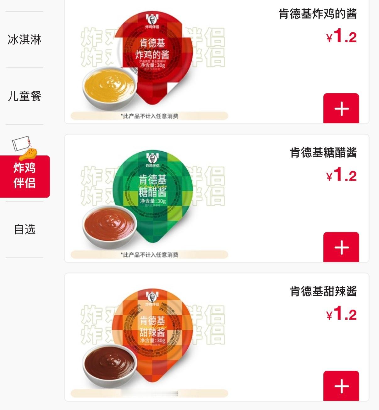 肯德基的酱料真收费了一盒要1块2,太贵了,不点了