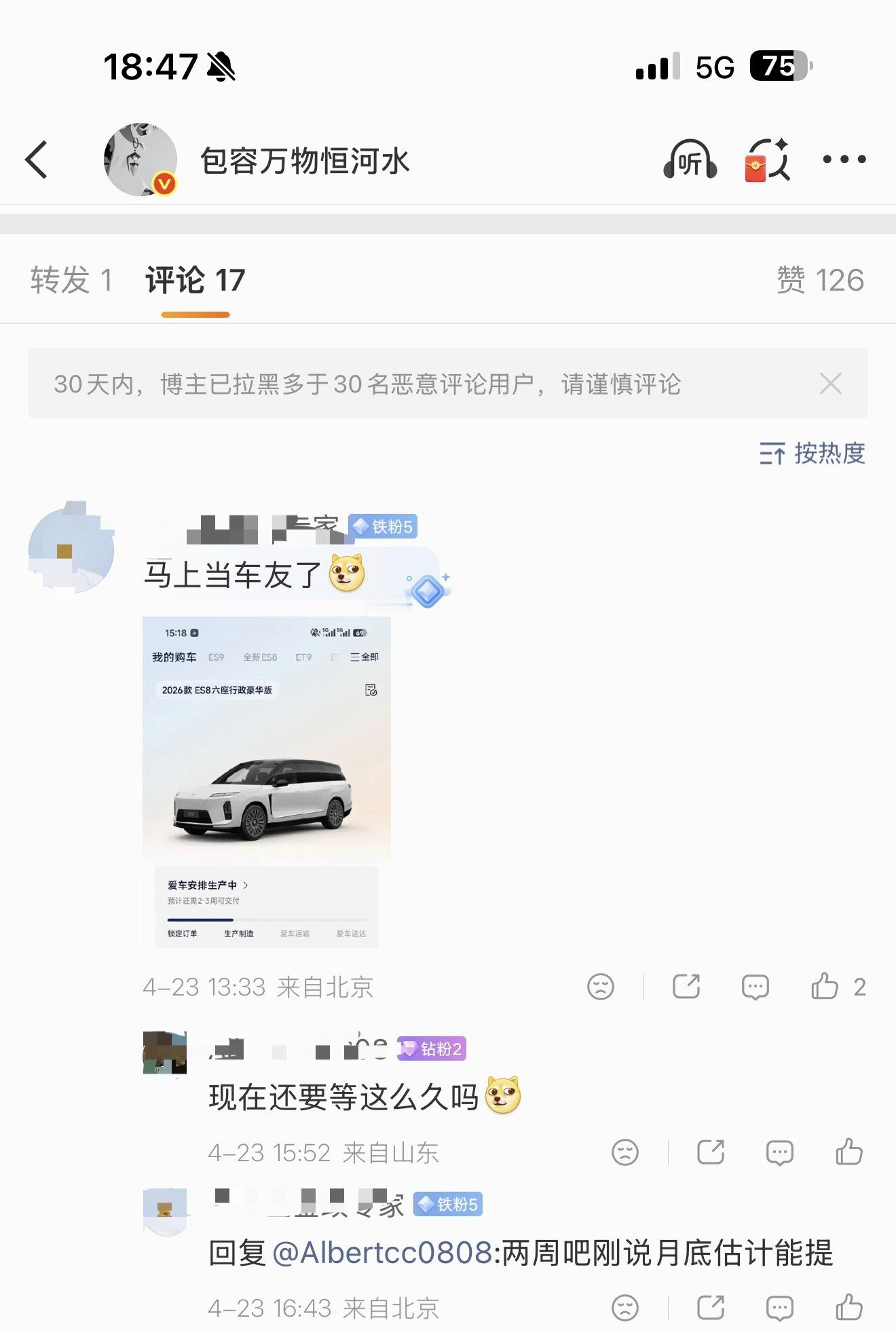 看到包姐评论区,全新ES8锁单后,依旧需要排产2-3周,所以这后续订单也还行呀。
