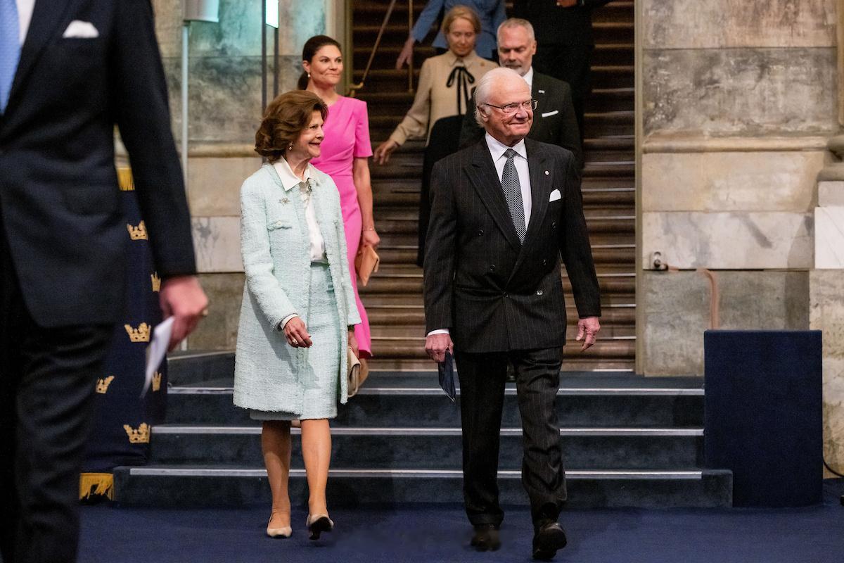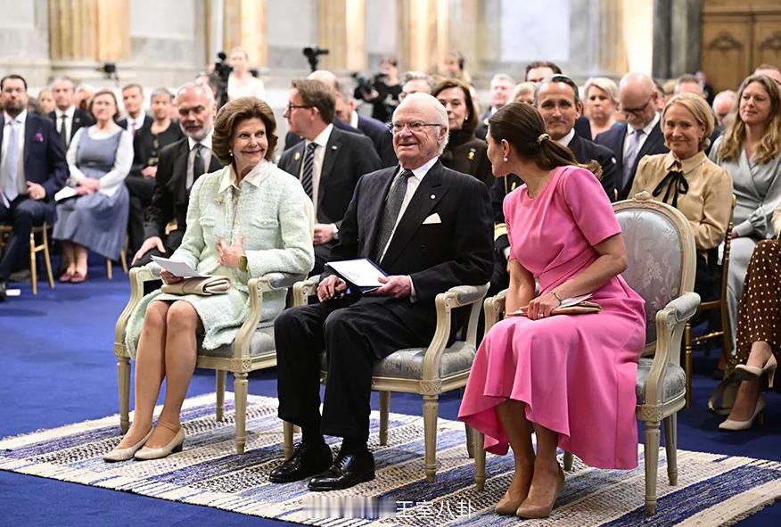 4.22 瑞典国王卡尔十六世、王后西尔维娅和和王储维多利亚公主出席zf和议会的接待会,主要收一些老头80大寿的礼物。最厉害是传统艺术家做的手工大挂毯,市价应该超过百万(rmb),会放在国事厅