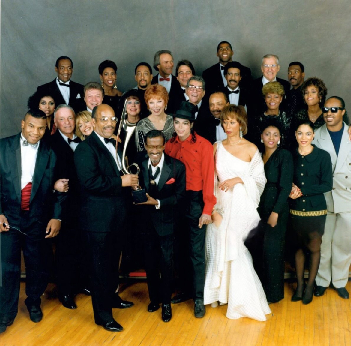【来自投稿】1989年11月13日 美国洛杉矶,众星云集为萨米·戴维斯庆祝60岁生日 ,斯蒂夫·旺德,迈克尔·杰克逊,惠特尼·休斯顿,艾迪·墨菲,克林特·伊斯特伍德,迈克尔·泰森…… 萨米·戴维斯此时已经患有喉癌,他于半年后1990年5月去世