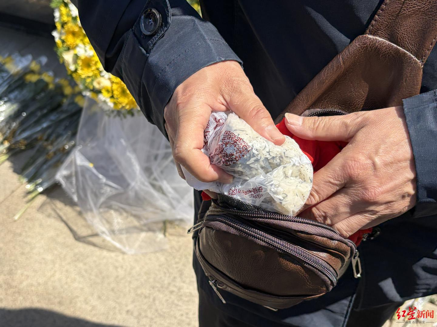 参加仪式的烈士家属中,有侯运恩烈士的侄子侯启宏。“这次我特意给叔叔带来了一包我们家乡陕西安康的土,希望可以放在烈士陵园中,陪在叔叔身边。”侯启宏告诉红星新闻记者,退役军人事务部门一直都在关注着烈士寻亲的工作,“几年前他们就来采集了我们的血样,核对身份信息,去年成功确认了叔叔侯运恩的志愿军烈士身份。”