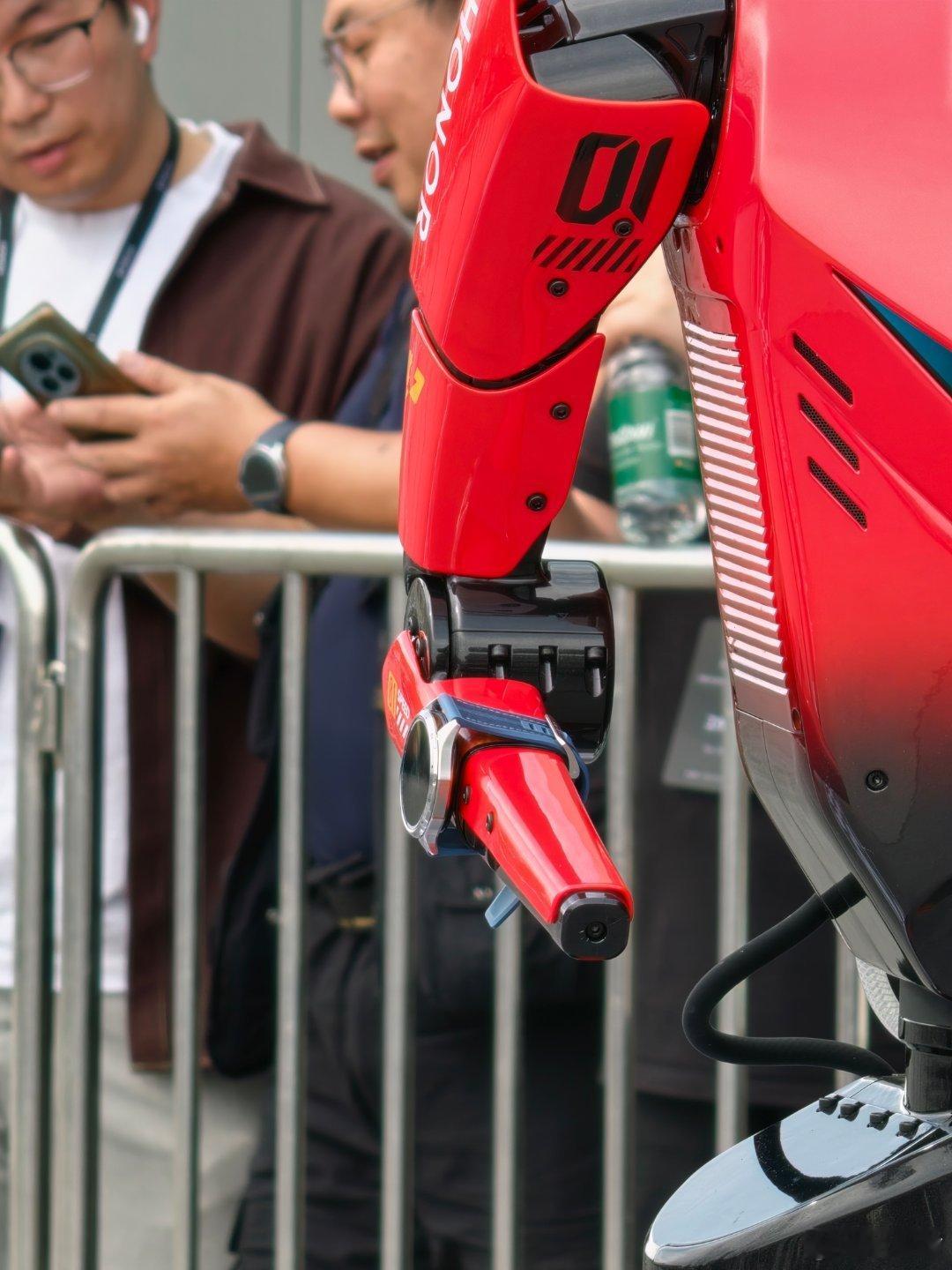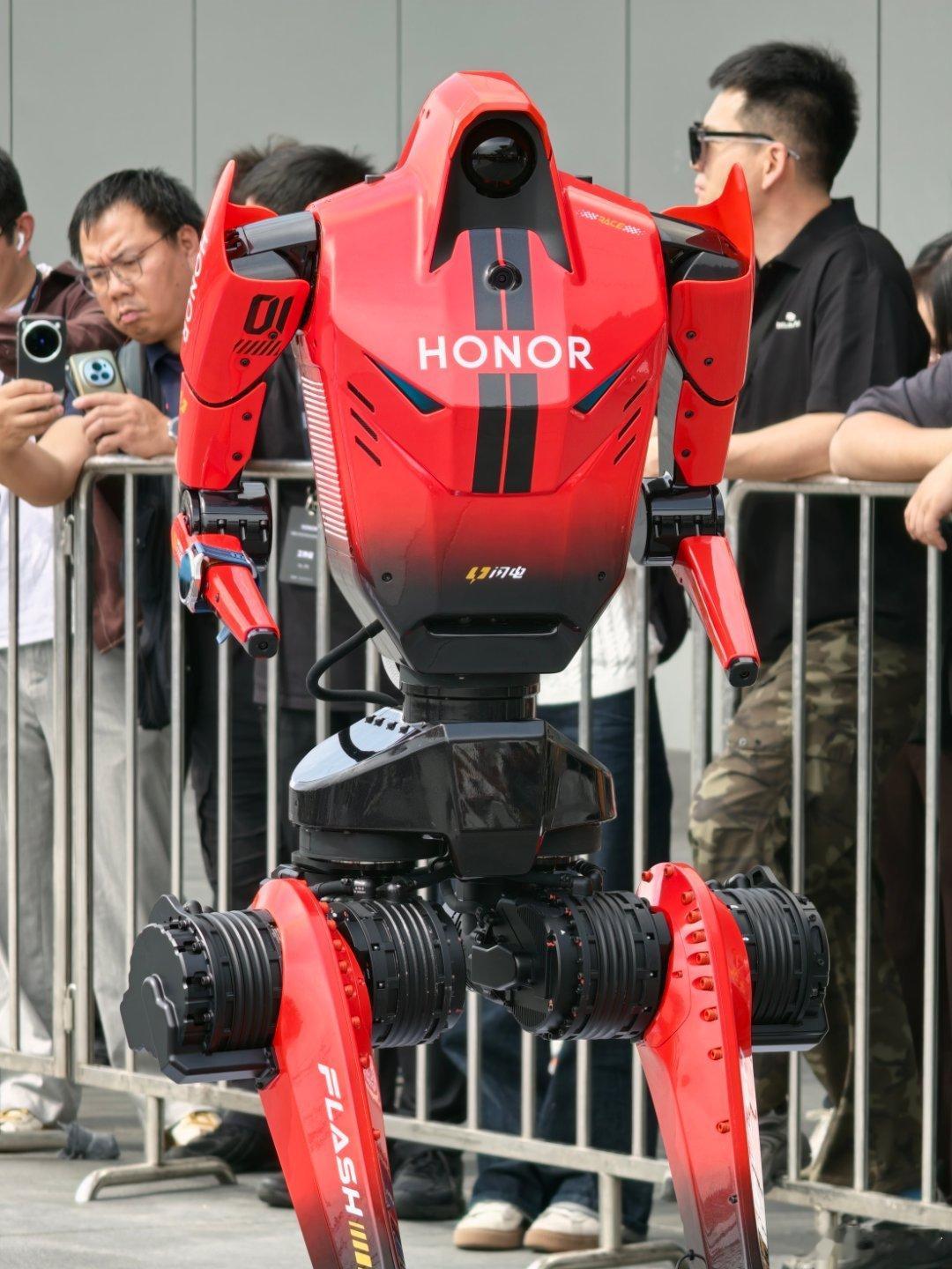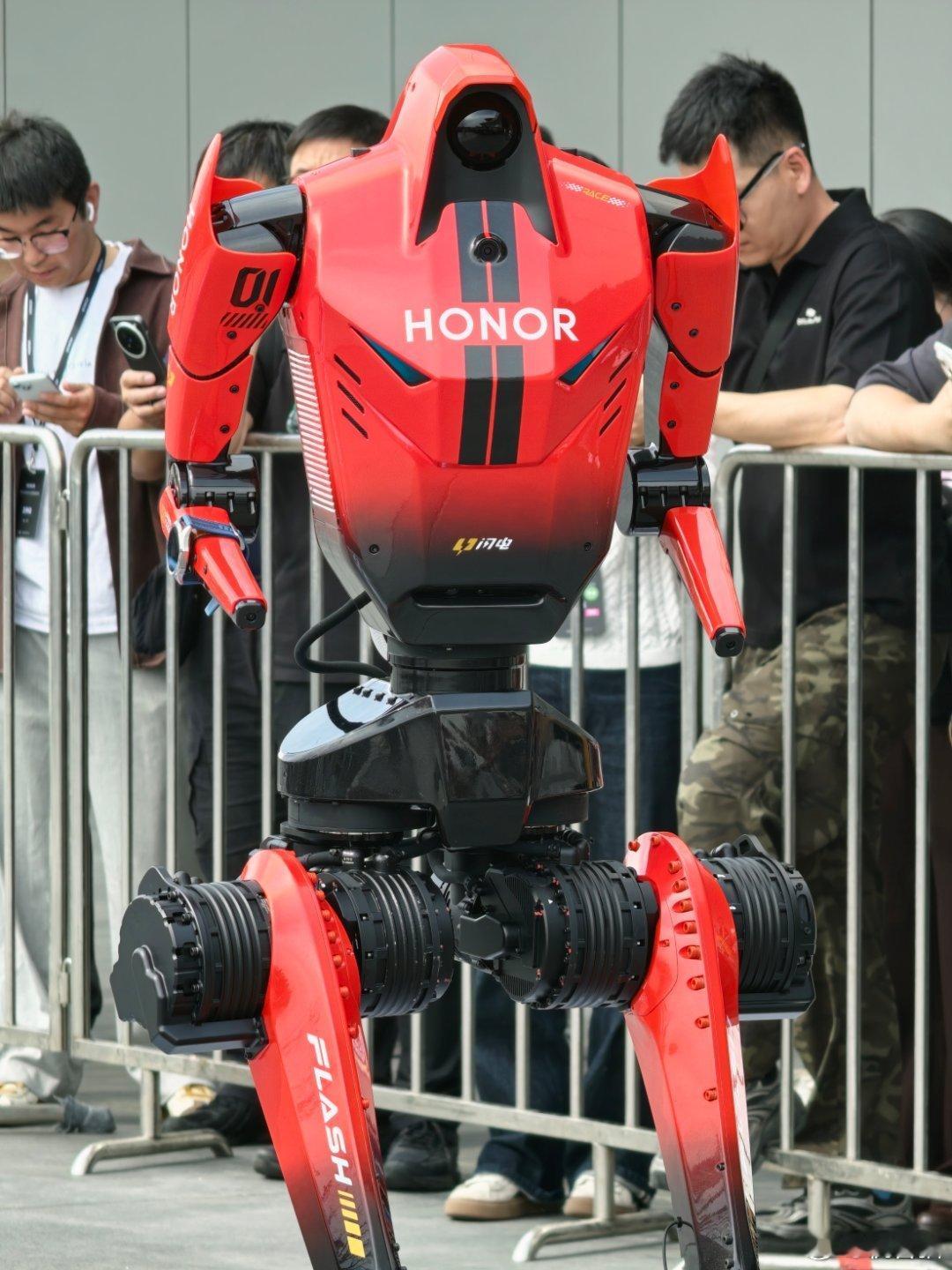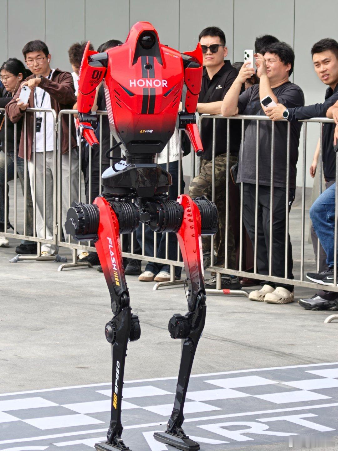 拍了几张荣耀闪电机器人的照片,这家伙跑得确实快张予曦和荣耀闪电百米赛跑