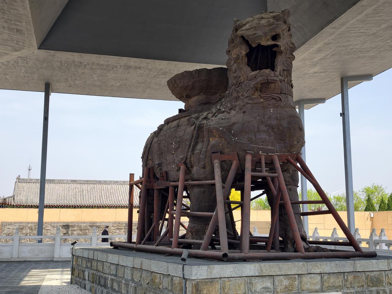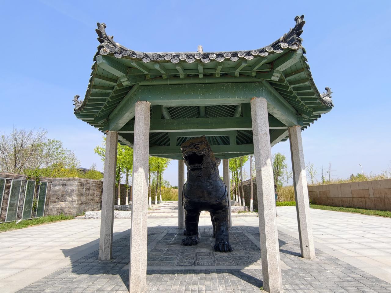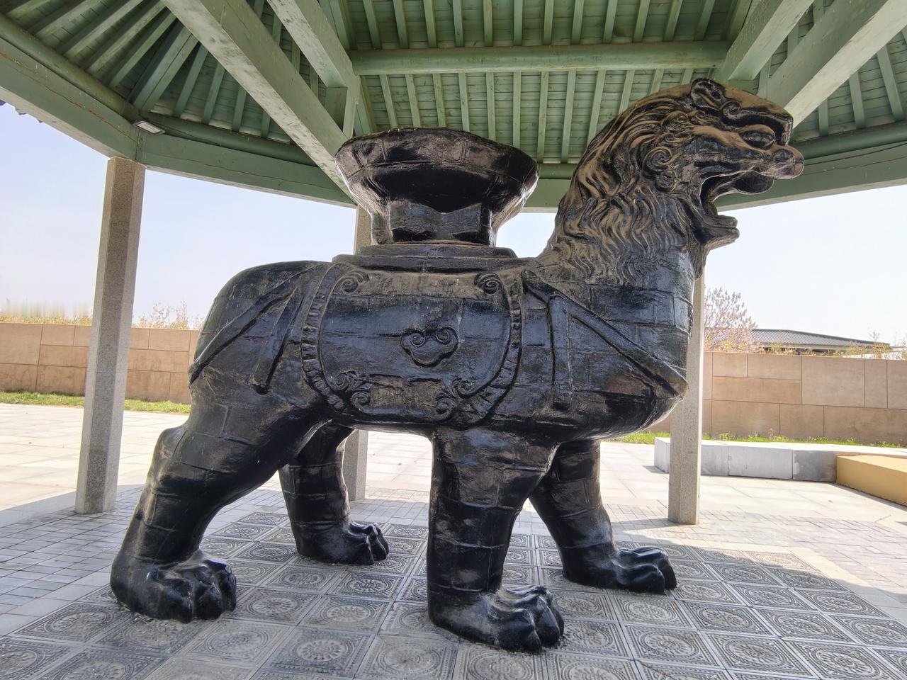 狮城沧州(2): 沧州铁狮和旧城遗址公园,位于城区东南的沧县旧城镇,从沧州站公交901与907路直达! 作为沧州最重要的名片,沧州最富盛名的古迹肯定就是这处铁狮子了,铁狮子又名“镇海吼”,民间有华北四宝之说,沧州的别称“狮城”也由此而来。 走过长长的博物馆,终于千呼万唤地看到了追寻中的铁狮子,还莫名有些感动,尽管残缺,显得还是那么很高大威猛,尽管用铁架子支撑着,但仍然散发出他的坚强!! 围绕着铁狮子转了一圈,尽可能地从不同角度多拍些照片,希望镇海吼能在这片土地上再多多支撑些时年! 返程到狮城公园,又看了新铸的铁狮子,虽大致还原出原铁狮的雄姿,但无法复原残狮的厚重与情怀!! 沧县铁狮子