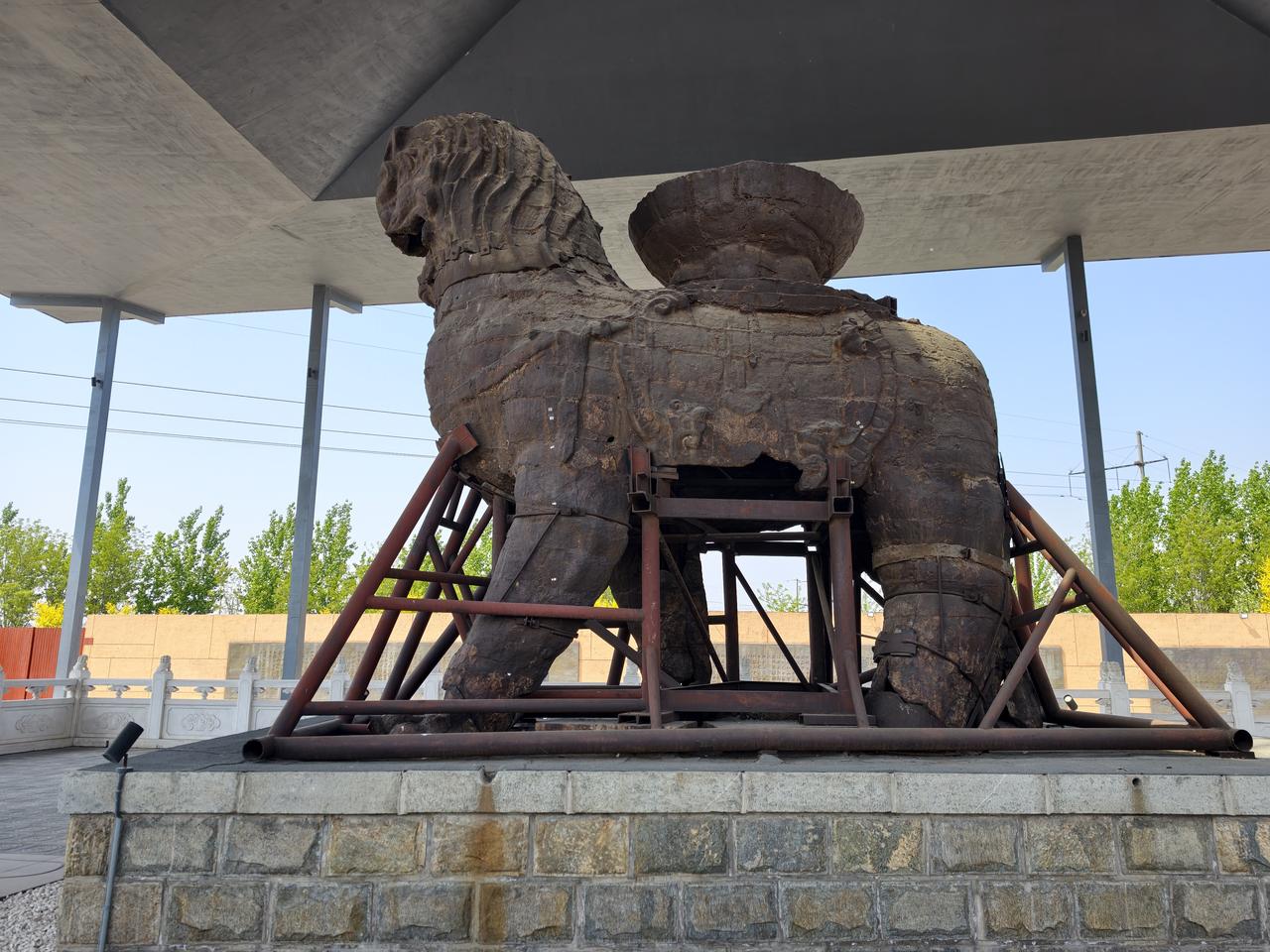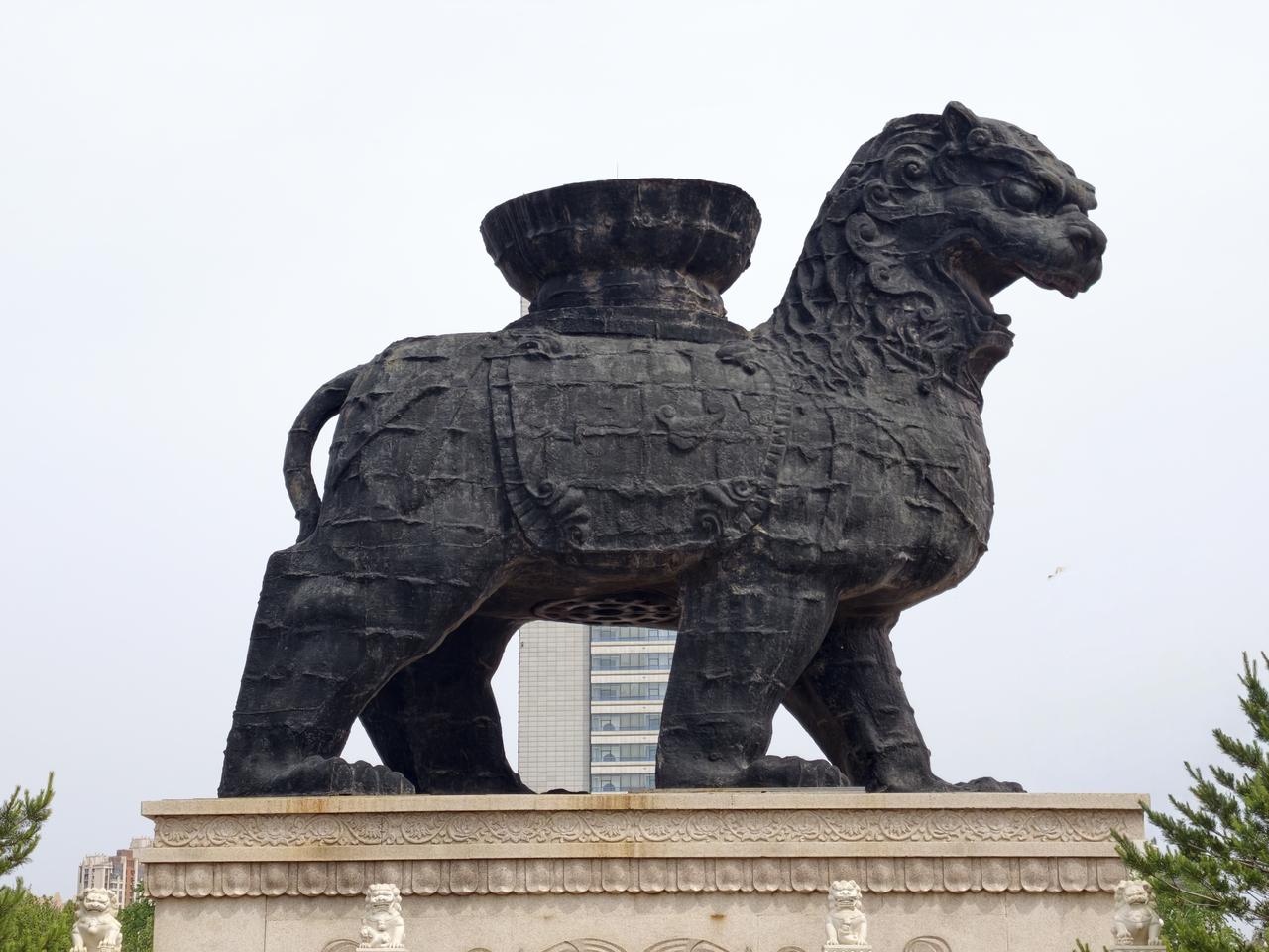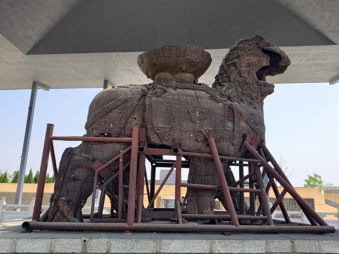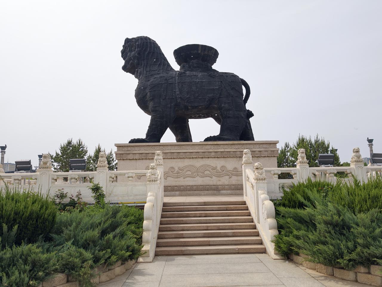 狮城沧州(2): 沧州铁狮和旧城遗址公园,位于城区东南的沧县旧城镇,从沧州站公交901与907路直达! 作为沧州最重要的名片,沧州最富盛名的古迹肯定就是这处铁狮子了,铁狮子又名“镇海吼”,民间有华北四宝之说,沧州的别称“狮城”也由此而来。 走过长长的博物馆,终于千呼万唤地看到了追寻中的铁狮子,还莫名有些感动,尽管残缺,显得还是那么很高大威猛,尽管用铁架子支撑着,但仍然散发出他的坚强!! 围绕着铁狮子转了一圈,尽可能地从不同角度多拍些照片,希望镇海吼能在这片土地上再多多支撑些时年! 返程到狮城公园,又看了新铸的铁狮子,虽大致还原出原铁狮的雄姿,但无法复原残狮的厚重与情怀!! 沧县铁狮子