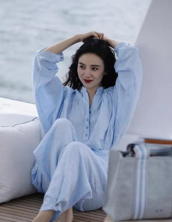 宋佳这一套,直接封神! 浅蓝亚麻套装,清爽减龄, 温柔又松弛,气质直接拉满💙 宋佳 穿搭分享 夏日穿搭