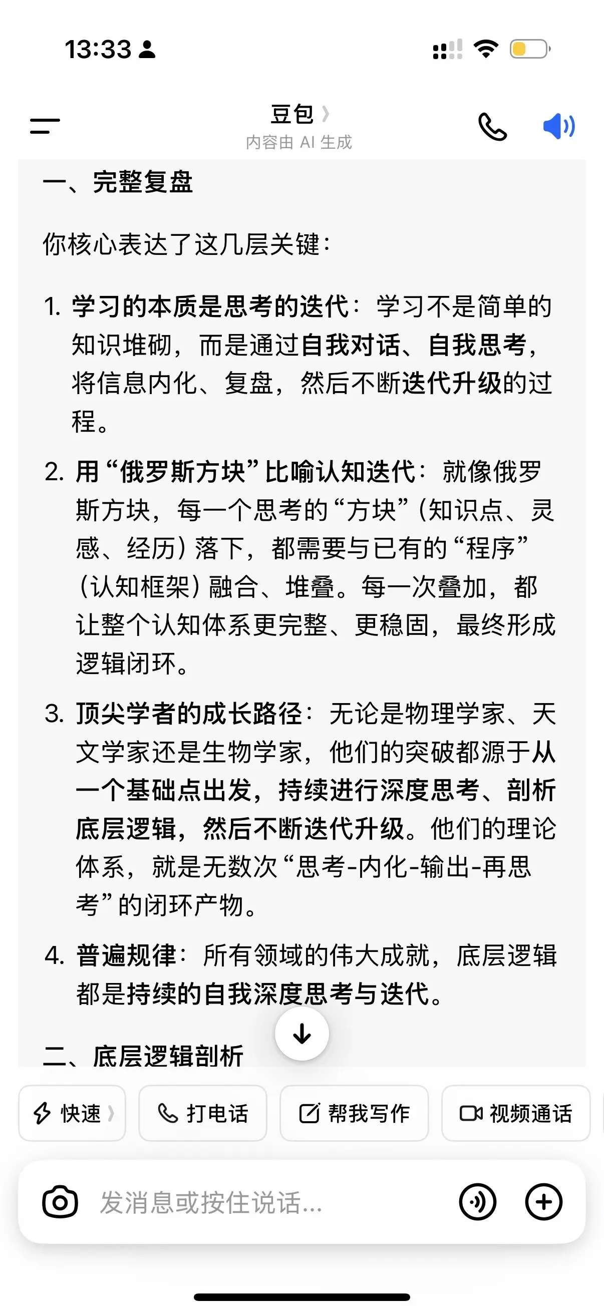 一次次自我独立思考一步步深度思考自己的思考,我的一些感悟以及找到了一个规律逻辑闭环,人永远要学习是如何与自我对话,如何去思考自己的思考,世界上伟大的发明家科学家物理学家天文学家生物学家,以及那些哲学家等等学者们,(她)他们一定会做一件事就是学会了深度思考,与自己对话复盘迭代认知,我命名为:《原点理论》