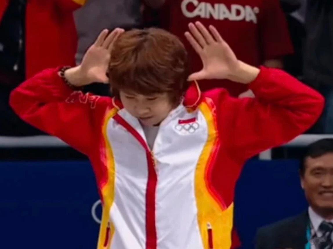 她当年也是这样站上领奖台的虽然是说预测名次,她玩笑说自己当年一般都是站在这里,但是但凡了解一点她的,她当年就是这样跳上领奖台的,动作也是这样,意气风发。只参加了两届冬奥会,一百多块金牌的绝对统治力,国内短道速滑至今没有人能拿到这个成就,这个含金量,说一句字面意义的天才,绝不过分。