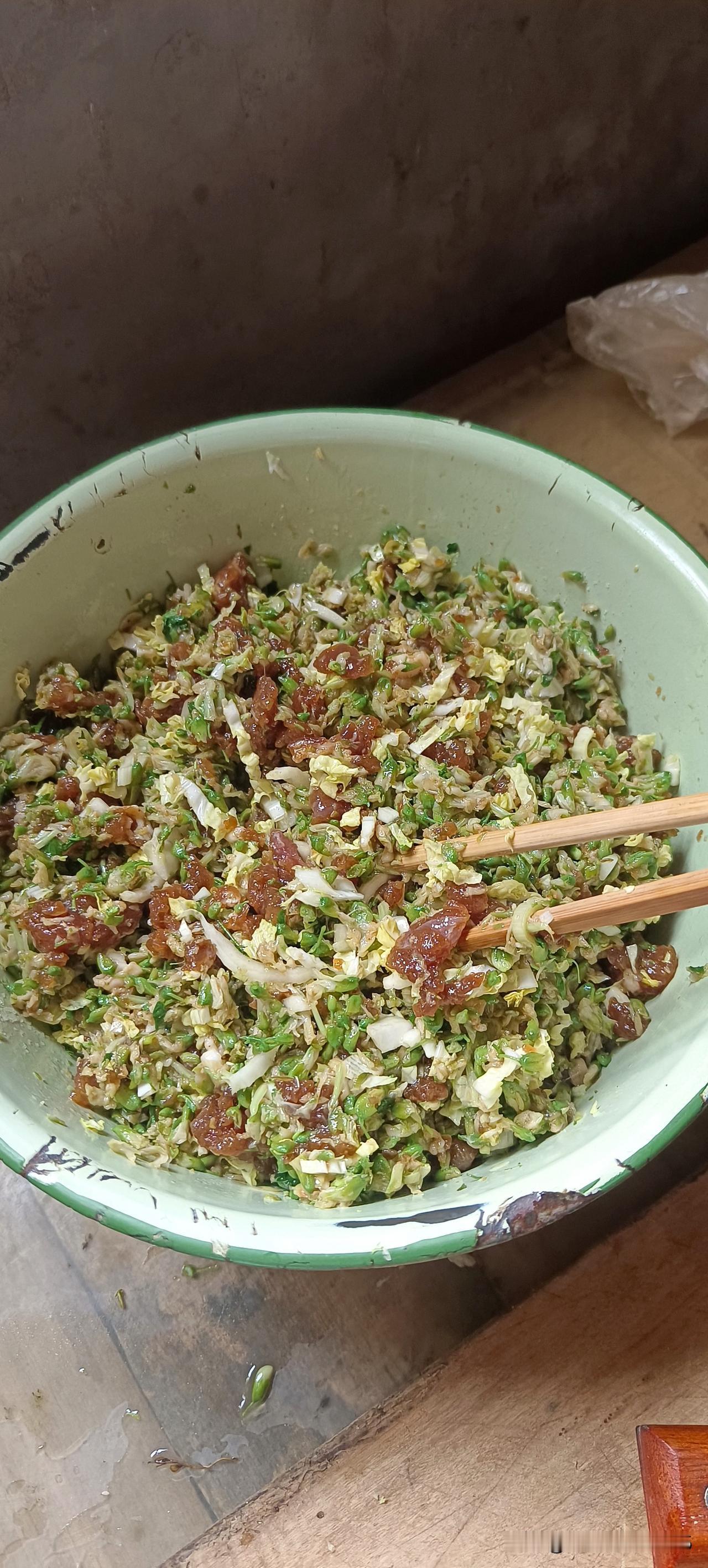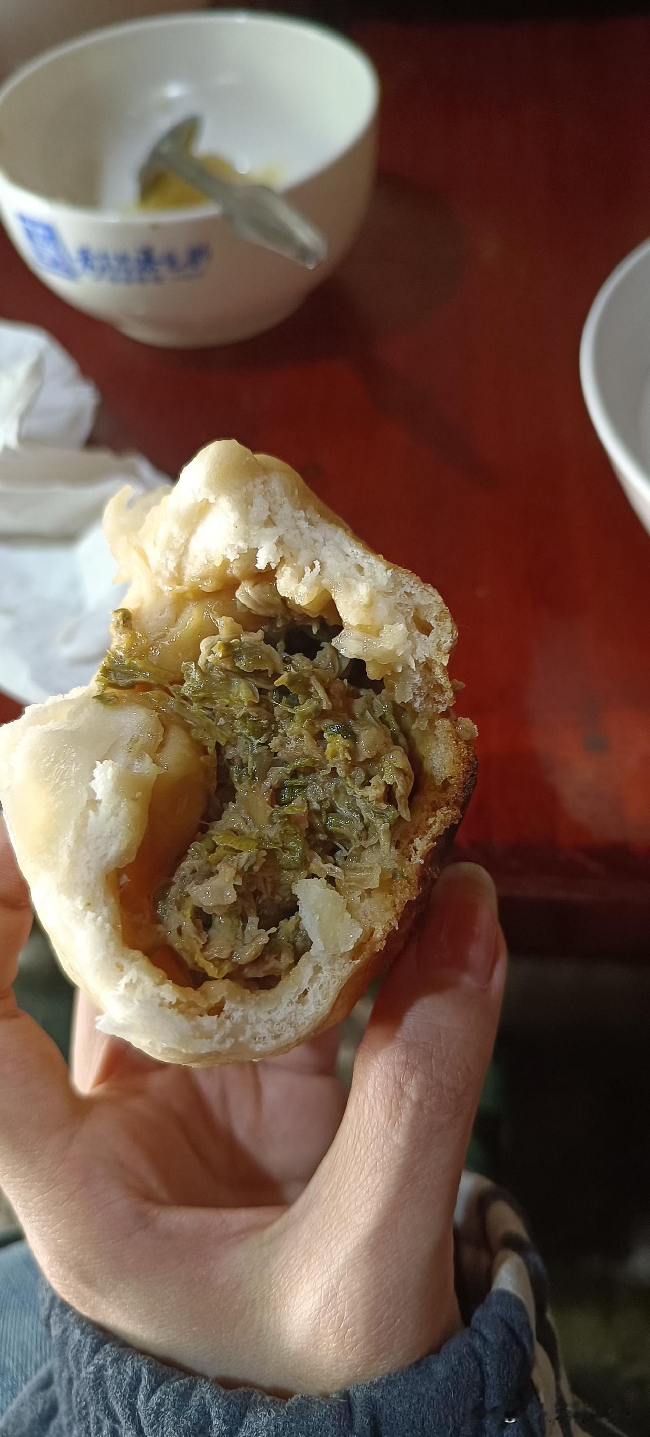 这就是槐花馅的大包子,用槐花和肉包的大包子可香了,味道嘎嘎好吃。 我已经吃了一半了,再给你们拍照是不是有点儿不太好看? 但是用槐花和肉包出来的大包子的确很香,有槐花的清香味,还有肉的肉香味,这两种味道混在一起,那简直就是人间美味。 这是婆婆包的槐花肉馅的大包子,我跟你们说她包这个包子好吃的秘诀就是最后放上一把大白菜。把大白菜剁碎,不要用盐杀水,直接放到馅子里,这样馅就不这么干,汁水会爆棚的。 春天的香甜就从一个槐花大包子开始吧,它不会辜负你的。现在满树飘香的槐花为什么不把它做成美食呢?尝尝吧,真的很好吃的。 槐花除了包大包子,烙槐花饼,你们还知道有什么别的吃法吗?