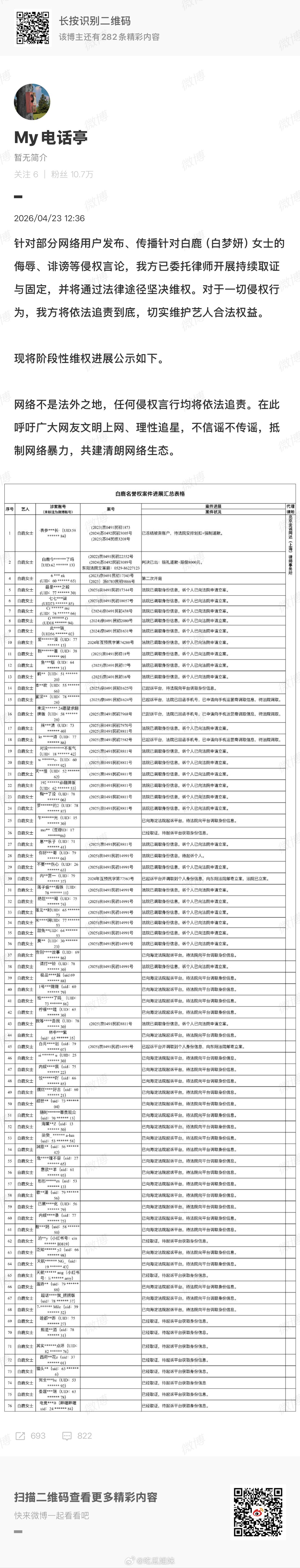 白鹿方公布维权进展 白鹿方公布维权进展,好长的告黑名单,网络不是法外之地,每个人
