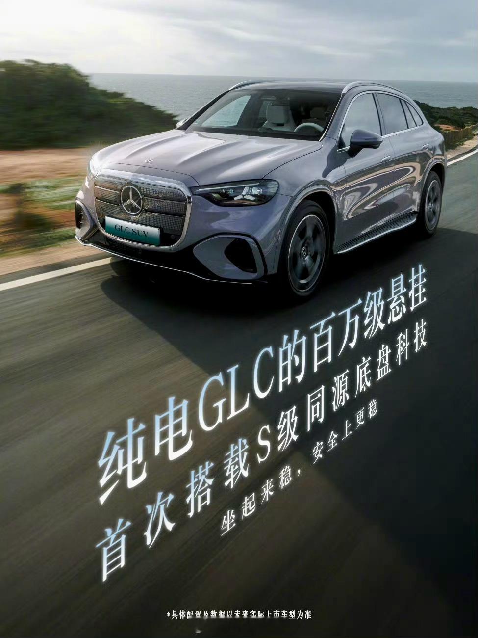 全新奔驰纯电GLC SUV全球首发,面向中国市场推出长轴距版本,轴距3027毫米。新车采用复古盾形格栅,内部搭载942颗可编程发光单元,解锁与充电时可呈现呼吸灯效果。