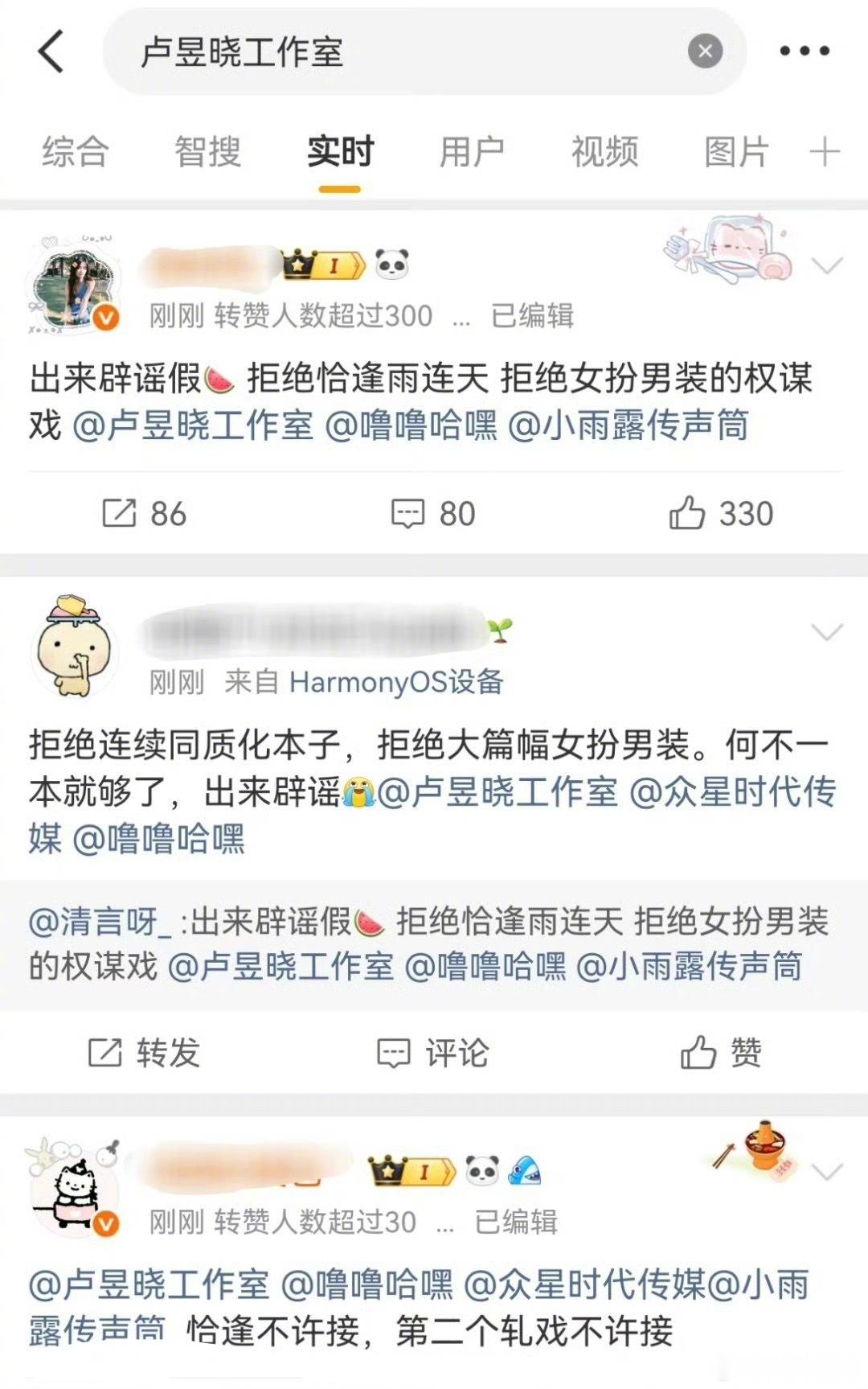 卢昱晓粉丝拒绝《恰逢雨连天》