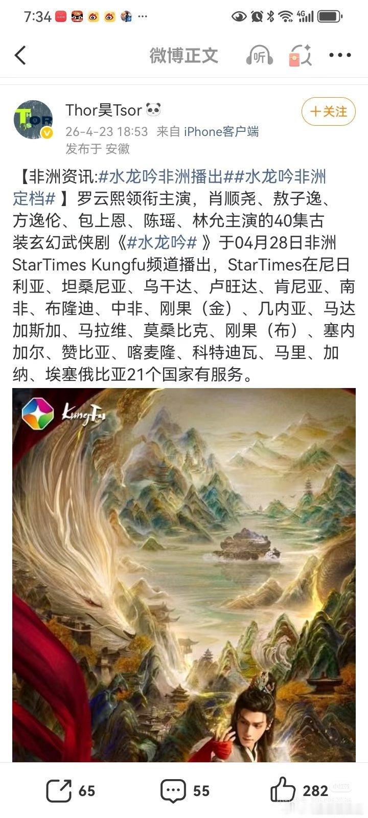 水龙吟出口到非洲去了,恭喜罗云熙!罗云熙水龙吟