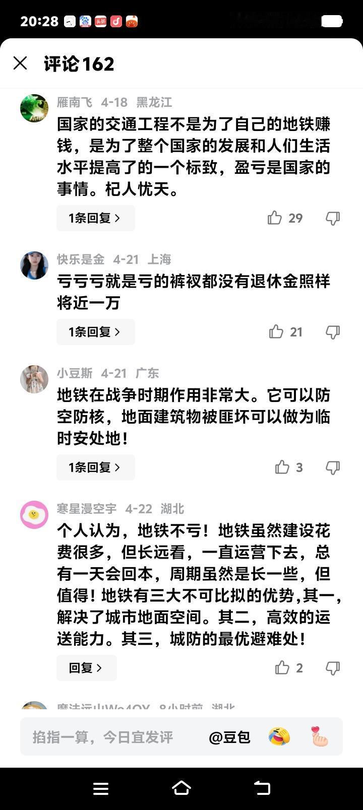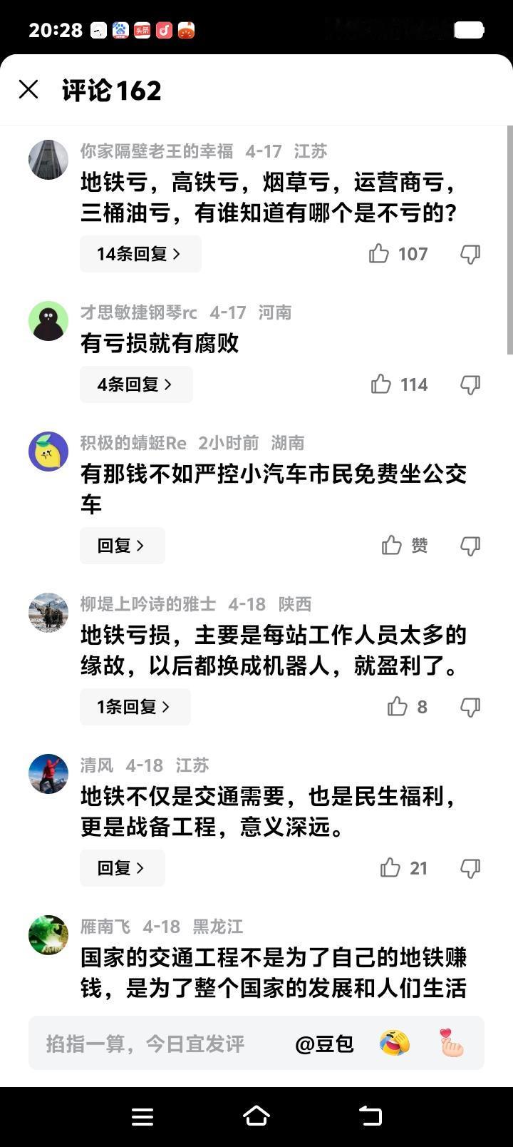 负债4.3万亿!28城地铁全亏损,为何国家还在“疯狂”砸钱修建? 先看一个让你瞠目结舌的数字:4.3万亿元。这不是某家企业的年营收,而是中国地铁系统背负的惊人债务总额。再看另一组更扎心的数据:已公布财务状况的28个城市,地铁公司全部亏损,一个都没能幸免。你没看错,全军覆没。 很多人看完第一反应就是:这怎么可能?地铁明明是“人挤人”的日常写照,早晚高峰车厢里简直像“人类压缩饼干”,去年全国轨道交通客运量高达177亿人次,平均每人每年坐12次地铁。客流这么火爆,怎么还能亏得如此整齐划一?答案其实很简单。 地铁看着像一门赚钱的生意,本质上却根本不是靠票价吃饭的买卖。它的核心使命,从来不是盈利,而是服务。所以,我们首先要搞清楚,为什么地铁会亏到让人心疼?建设阶段的烧钱程度,已经超出你的想象。 地铁最大的标签,不是跑得快,而是“吞金兽”本兽。在中国,每公里地铁平均造价约7到8亿元,在北京、上海、深圳这类超大城市,每公里轻松突破10亿元大关。隧道要向地下十几米甚至二十米深挖,一台盾构机就要几千万甚至上亿元,还要处理地层、管线迁改、车站施工等一整套复杂工程。 你看到的是地上一条线,背后其实是一座庞大的地下城市。建完也不代表能喘口气,真正的“烧钱模式”才刚刚拉开帷幕。人工工资、电费、设备维护,每一项都是天文数字。地铁不是公交车,安全容错率几乎为零,轨道、信号、电梯、屏蔽门,哪一样都不能将就。 一旦线路进入大修周期,成本更是吓人,每公里整修费用约1500万元。一条几十公里的线路修一轮,就是十几亿元起步。所以,你花两三块钱坐一趟地铁,买到的绝不仅仅是“从A到B”,而是一整套高密度、高安全、高准时的城市运输系统。这笔钱,连运营成本都覆盖不了。 放眼全球,地铁“亏损经营”几乎是常态。纽约、首尔、伦敦的轨道交通,也长期靠财政输血。说得直白点,地铁从出生那一刻起,就更像公共服务,而不是赚钱机器。那问题来了:既然全球都亏,为什么全球还在疯狂建?因为地铁真正的价值,根本不在地铁公司的财务报表里。 第一,它解决的是城市拥堵。大城市最怕的,不是车多,而是所有人必须在同一时间出门。地铁最大意义,就是把庞大人口“装进地下”,用稳定班次把城市从堵死边缘拉回来。没有地铁,很多超大城市的路面交通基本会瘫掉。第二,它释放的是土地和空间效率。 轨道一通,沿线土地和物业价值随之抬升。地铁公司账上亏了,但整座城市可能赚了。楼盘更值钱了,商圈起来了,产业也更聚集了。第三,它带来的是环境收益。一列地铁能拉上千人,替代的是几十辆公交、上百辆私家车,对节能减排、改善空气质量的作用,直接体现在城市运行成本下降上。 也正因为如此,真正聪明的玩法,从来不是指望票价养活地铁,而是靠“地铁加开发”一起算总账。这就是常说的TOD模式,围绕地铁站布局商业、住宅、办公,让人流变成地产和税收回报。香港地铁就是经典案例,深圳也在往这个方向走。但这里有一句大实话。 不是每个城市都适合修地铁。超大城市修地铁是刚需,一些人口不足、财力一般、客流有限的城市,硬上地铁,后续可能变成长期财政负担。审批越来越严,原因也在这儿。所以,28城全亏,不代表地铁没有价值,但地铁有价值,也不代表每座城市都该盲目上马。地铁可以亏,但不能乱亏。 城市可以投资未来,但不能为了面子透支未来。说到底,地铁不是一门普通生意,而是一种城市能力。它买下的,不只是今天的运量,更是明天的秩序、效率和发展空间。问题从来不是“地铁该不该亏”,而是这笔亏损,究竟是在为城市未来铺路,还是在为冲动决策买单。 (来源:综合自每日经济新闻、各地铁公司年报、中国城市轨道交通协会数据及网友热评洵哥撰写) 基建真相 城市发展