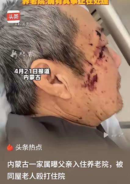 8旬老人养老院遭同屋暴打, 木棍打断3节无人管, 谁来守护晚年尊严? 真的越看越心寒!内蒙古赤峰一家养老院,竟成了8旬老人的“受难地”!同屋老人先用木棍把人打成重伤,棍子都断成三节,接着又抄起钢制拐杖继续施暴,整整两个小时,没有一个工作人员巡查制止! 家属去接人时直接崩溃:父亲裤子裂到裤裆,上衣后背撕烂,浑身是伤、头破血流,被送医时连动一下都怕挨打。涉事养老院承认确有其事,却只说“正在处理”,这轻飘飘的一句话,怎能抚平老人遭受的痛苦? 光严惩施暴老人远远不够,核心问题还是养老院监管彻底失守!收了养老钱,却连老人基本安全都保障不了,一个多小时的暴力无人察觉,这是严重失职! 养老机构是老人晚年的依靠,不是法外之地。你觉得除了追责养老院,还该如何完善监管,才能让老人安享晚年?