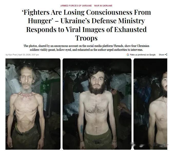900个亿,能帮助这些士兵度过饥饿,还是会制造更多这样的士兵? 4月23日,乌克兰网上传播一组照片,四名乌克兰前线士兵因饥饿而消瘦,眼窝深陷,肋骨突出。乍看,还以为是AI制作图片,可是乌克兰国防部已对此做出回应,称“这是战场最艰难区域之一的极端情况”,言外之意等于默认了事实。 讽刺的是,就在乌克兰财政即将见底之际,泽连斯基下令修复了被炸毁的友谊石油管道,匈牙利和斯洛伐克由此不再行使否决权,从而使乌克兰迅速获得了欧盟一项900亿欧元的贷款援助。不知道这900亿能不能帮助这些乌克兰士兵度过饥饿?亦或也可能这900亿能让得以续命的乌克兰产生更多这样的士兵。