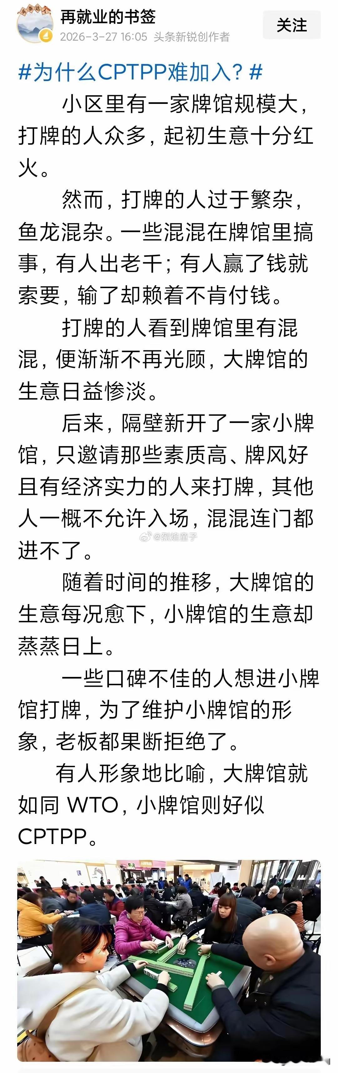 大牌馆是WTO,小牌馆是CPTPP。一下子具象了