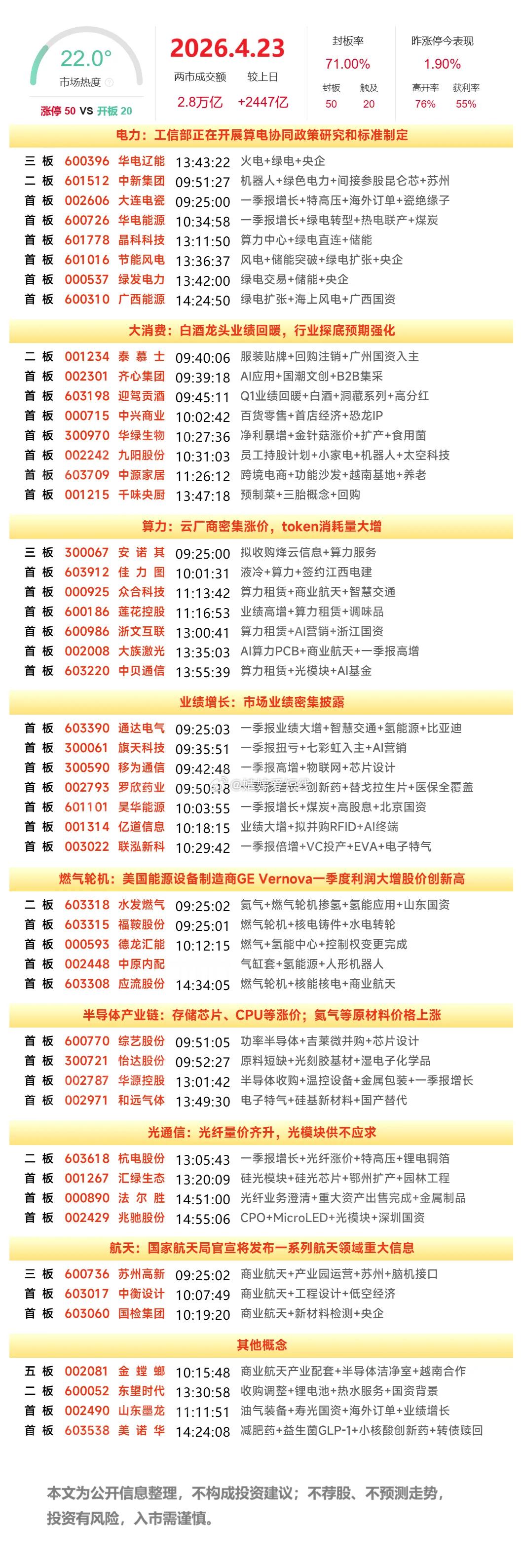 4月23日涨停榜
