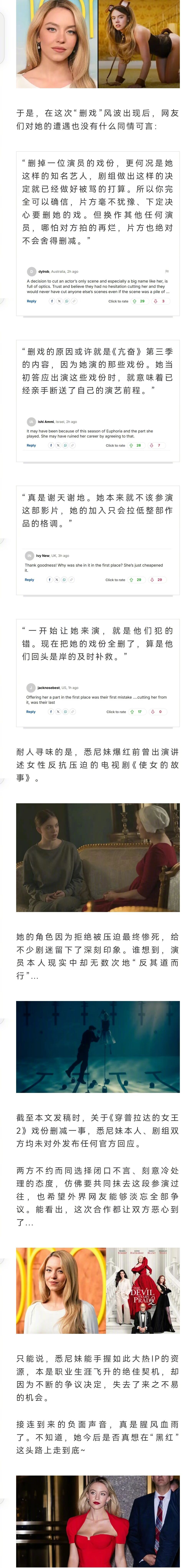 性感女神悉尼妹被曝在《穿普拉达的女王2》中所有戏份被删,原因竟是她近期的大尺度戏