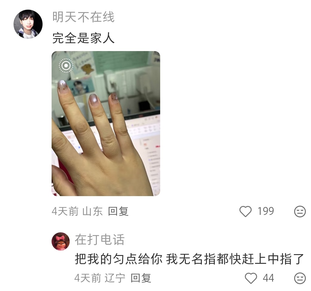 开始不懂这个帖子为啥那么多赞,点进去才知道是因为她小拇指和无名指一样长