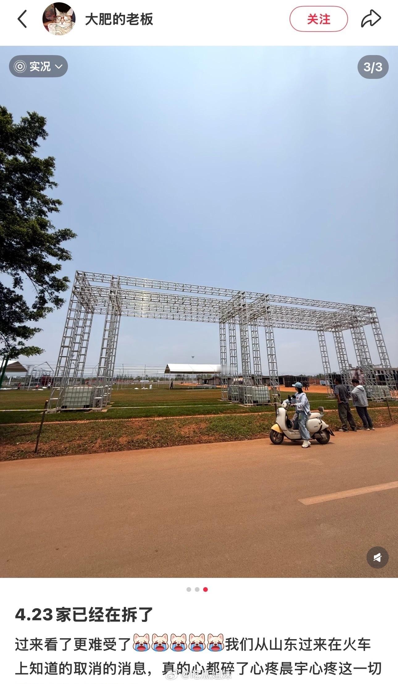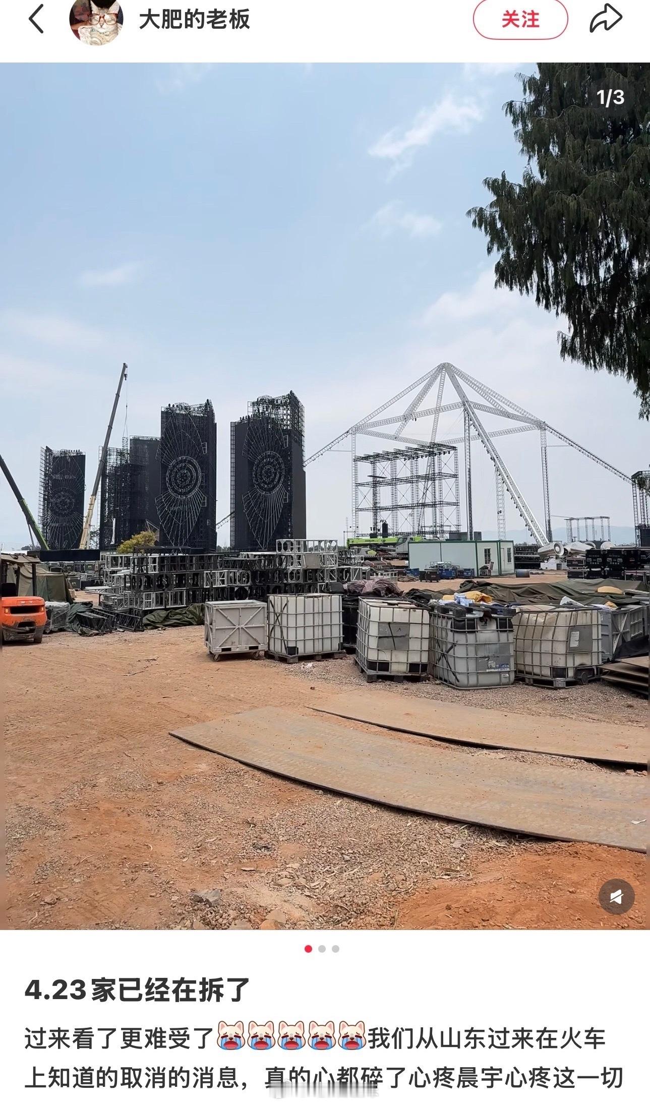 华晨宇演唱会场地开始拆了 华晨宇演唱会场地开始拆了,原定于五一期间举行的演唱会在开演前一周因“不可抗力”取消,真的好遗憾…