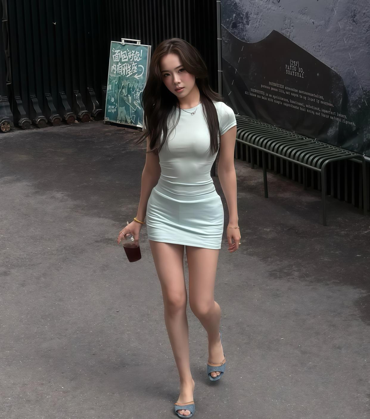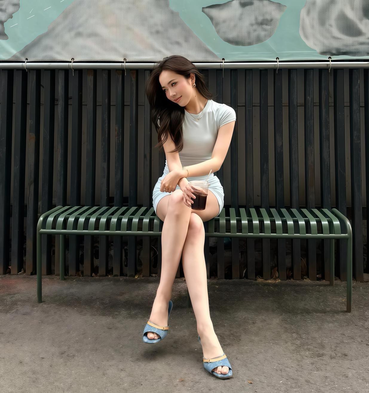 低饱和浅蓝真的太显白了,不用费心搭配也能穿出韩系小姐姐的感觉,街头随便拍都出片