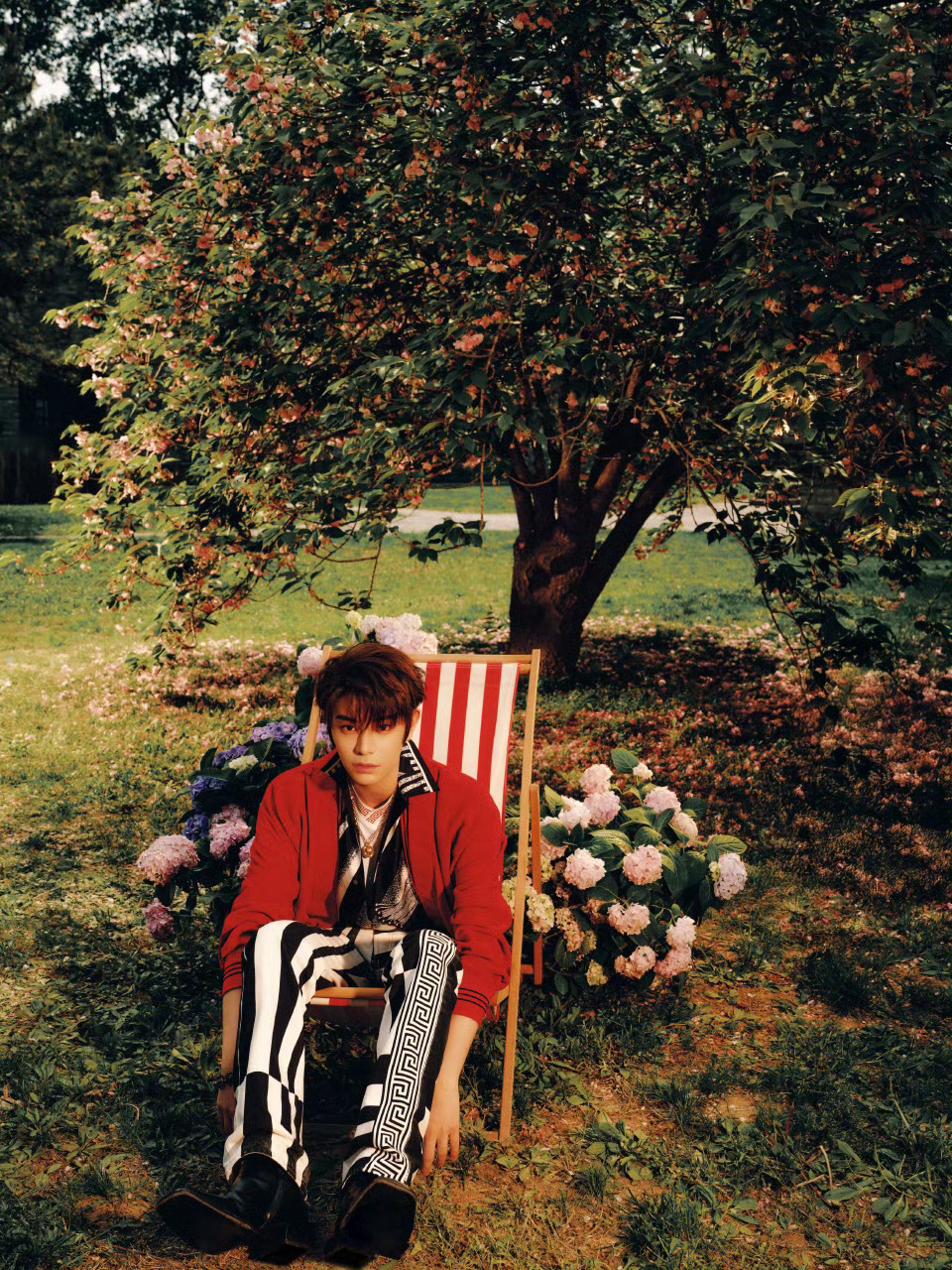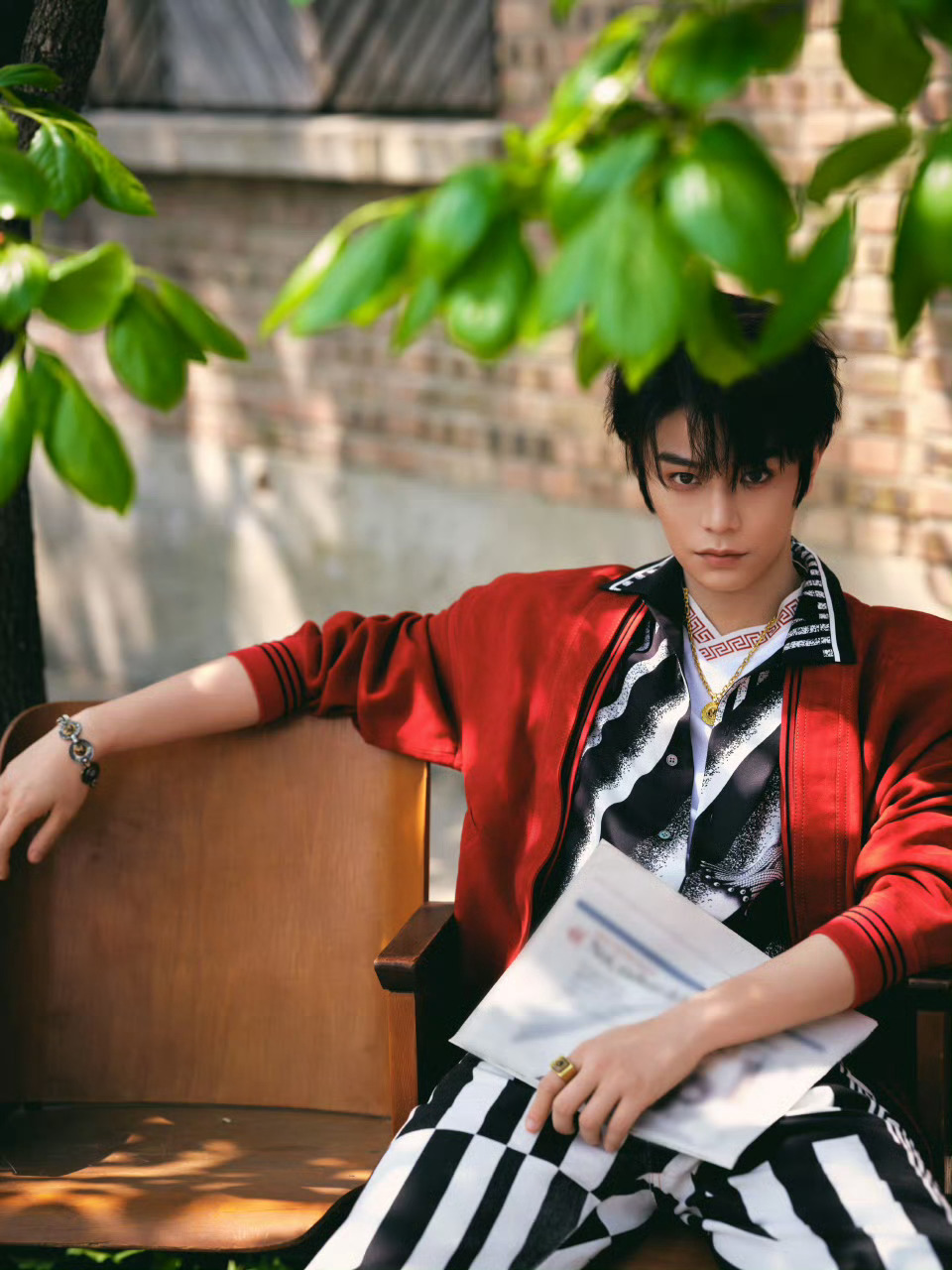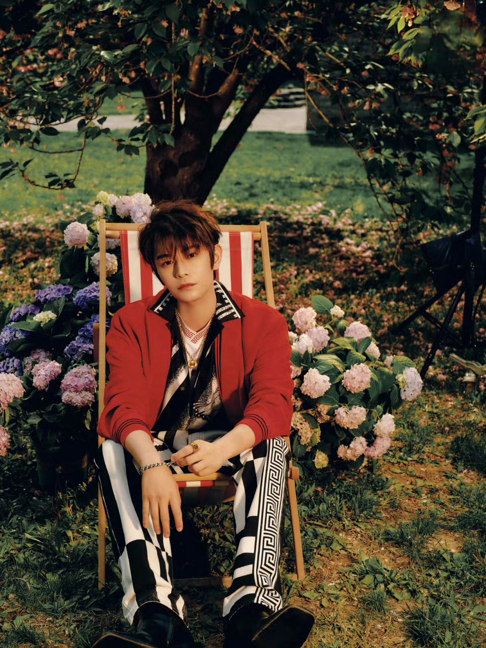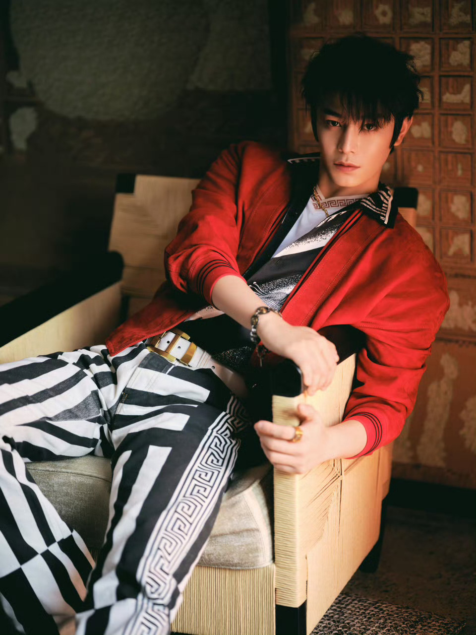 丁禹兮 北京国际电影节·范思哲影人晚宴造型图,身着 VERSACE夏日度假系列出镜,鲜亮红色外套、黑白希腊回纹,复古潇洒的摩登风格,带着午后的明媚气息。丁禹兮 范思哲 时尚灵感解读