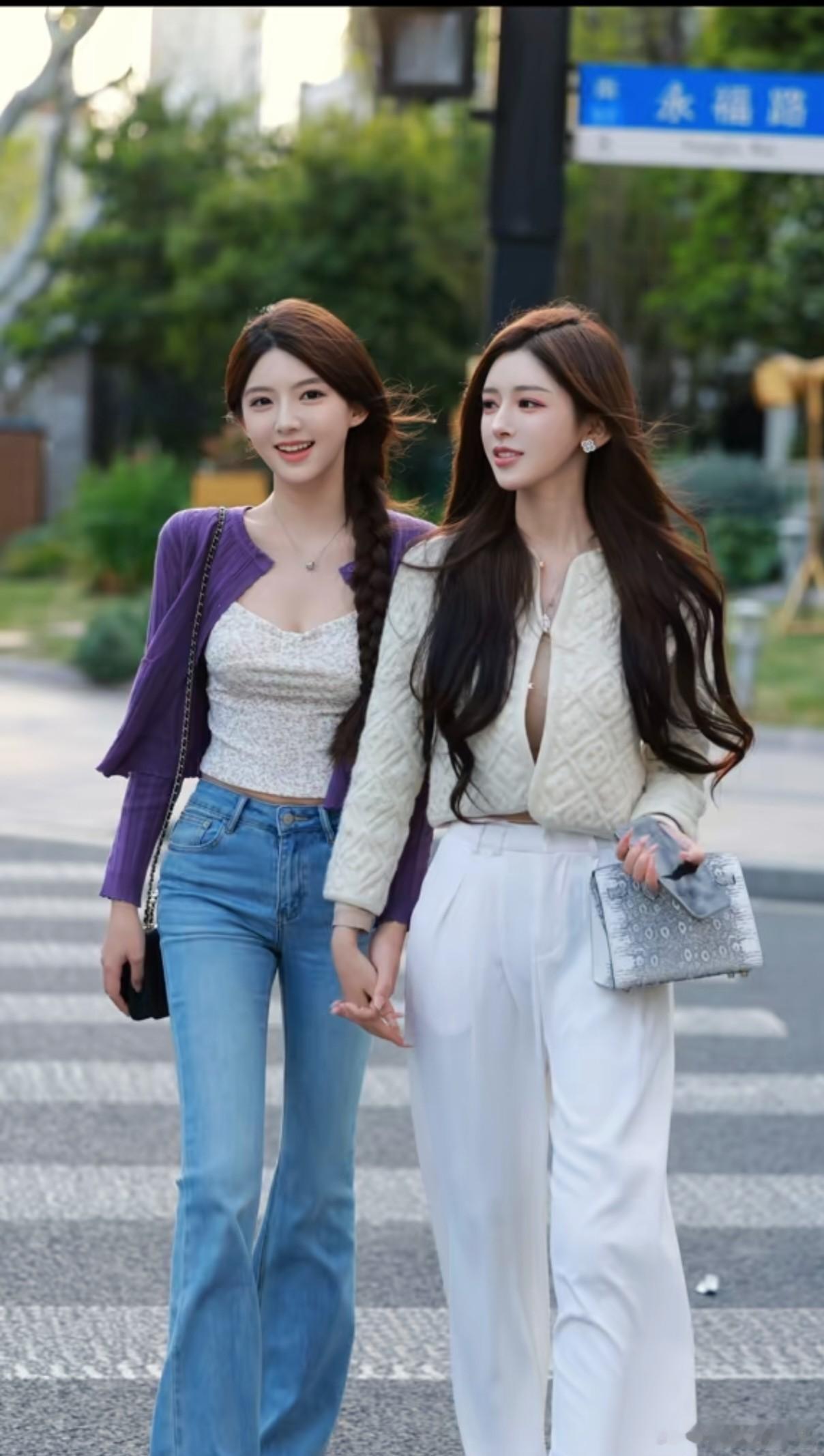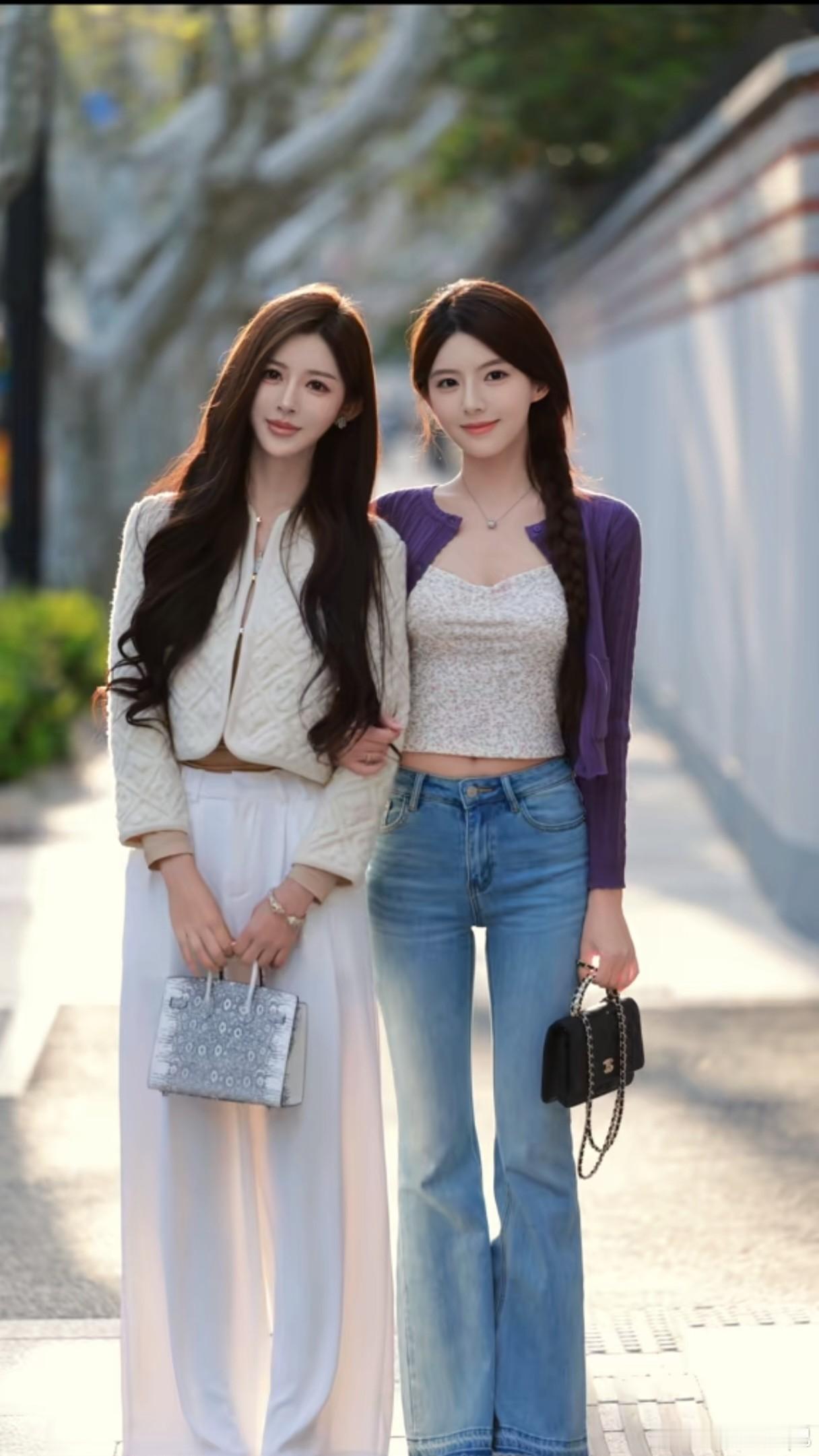 太喜欢这两个小姐姐穿衣风格了,韩里韩气超减龄!宽松工装外套、条纹T恤搭配半裙,