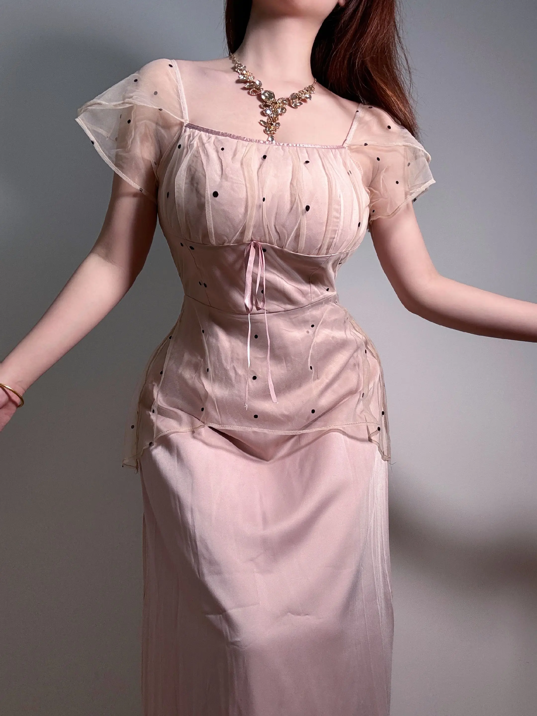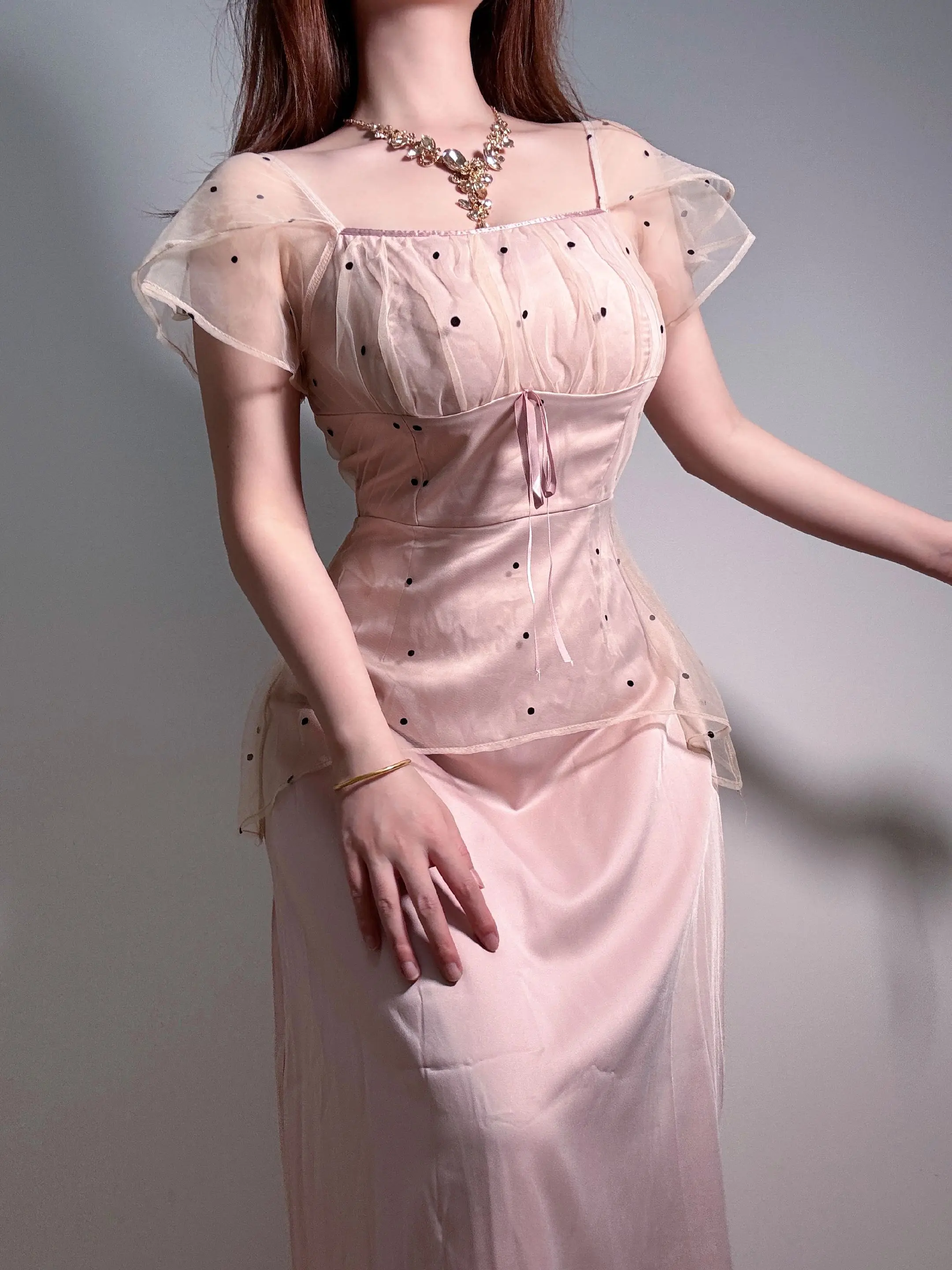 无法拒绝温柔感小裙子 吊带 纯欲吊带连衣长裙连衣裙 微胖穿搭 裸色长裙