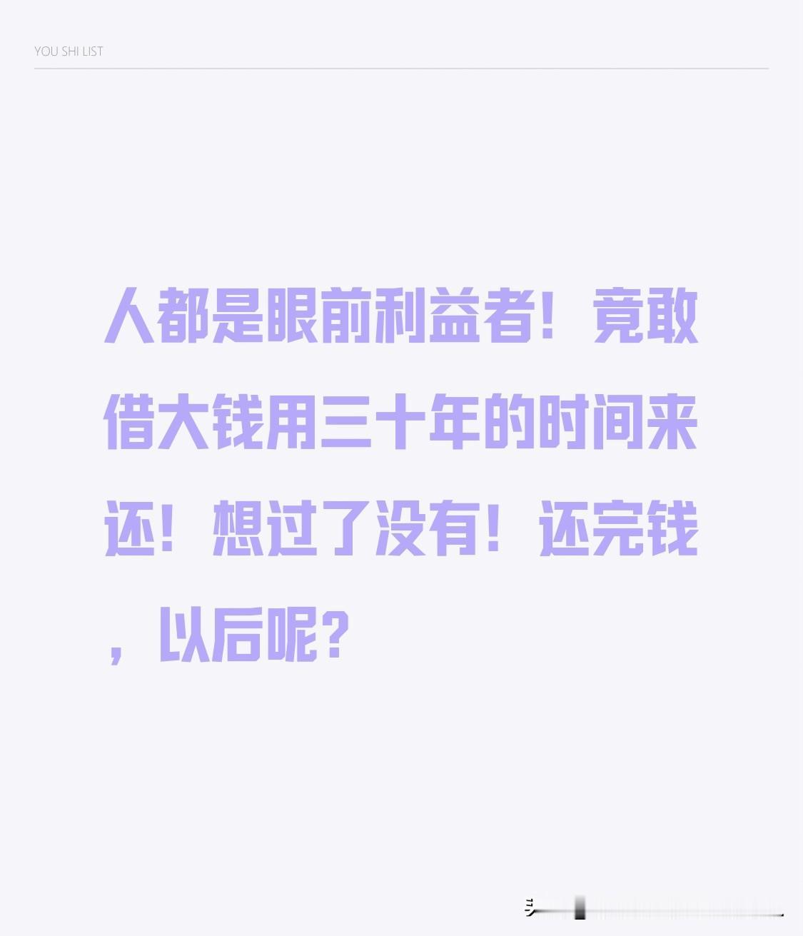 人都是眼前利益者!竟敢借大钱用三十年的时间来还!想过了没有!还完钱,以后呢?[捂