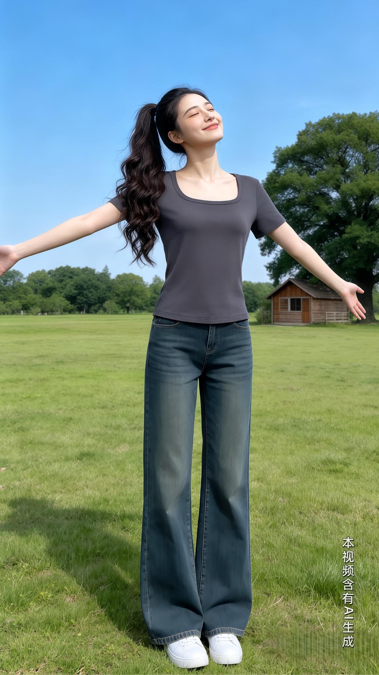 简约而不简单,确实是女神范儿的真谛,一条灰白牛仔裤搭配白色内T!时尚女性气质气