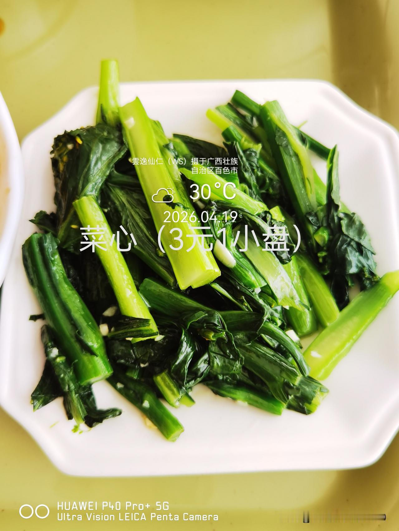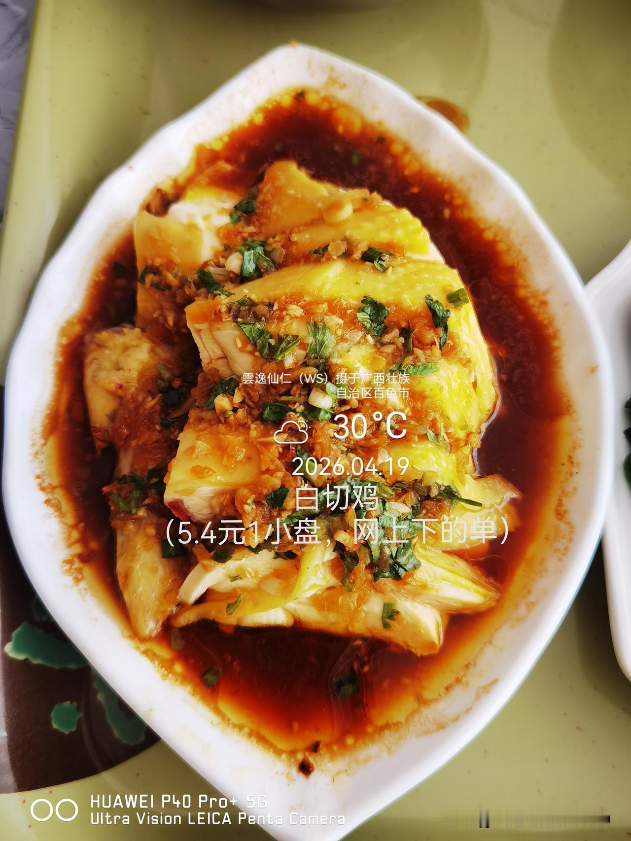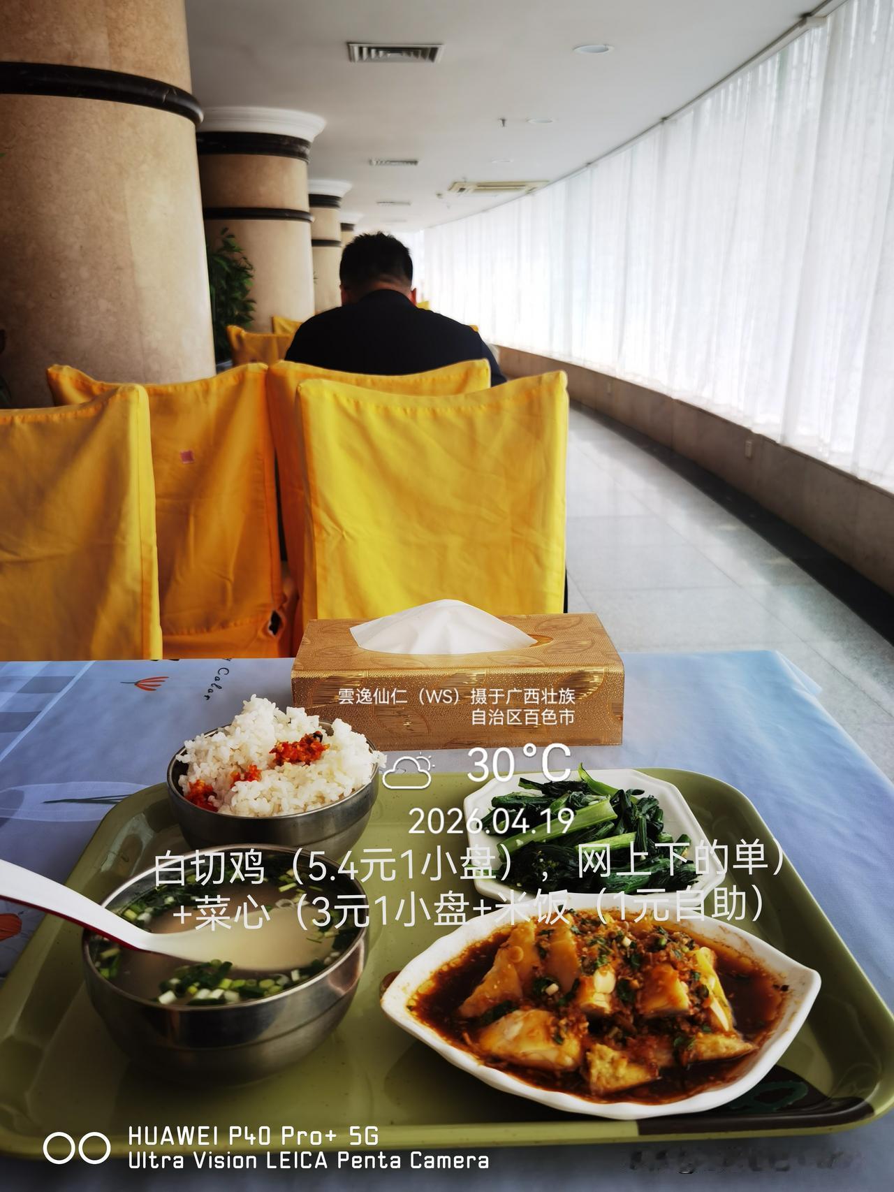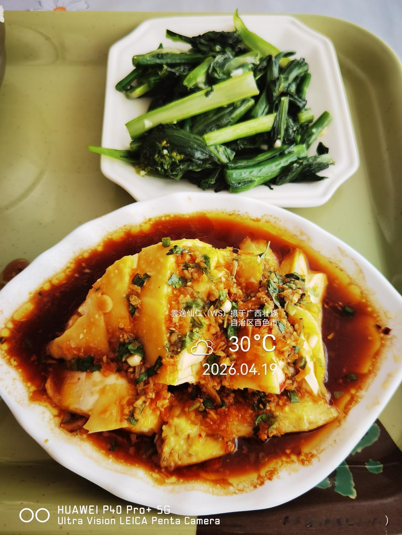 旅居生活记录(8558)广西壮族自治区百色市(244)品尝小吃61:白切鸡(5.4元1小盘,网上下的单)+菜心(3元1小盘)+米饭(1元自助)、花生冰(3元1杯)。