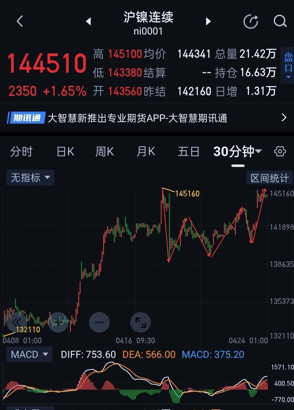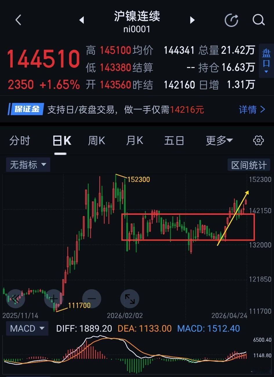 沪镍,多、空一键切换。 沪镍夜盘受消息刺激,多头披挂上阵,开启冲关模式,再次站上图(1)的五分钟中枢。但稍显遗憾的是,在临近145160时却引而不发。是关前蓄势还是上涨乏力?答案只能留待日盘解锁。 沪镍日盘,能否有效站稳图(2)秒级中枢是关键。站稳,可期待挑战前高152300。若不能站稳,需观察回落是否能在图(1)中枢上方企稳,形成该中枢的三买结构。 沪镍夜盘冲高,扭转了走势被动局面。目前图(3)呈现低点抬高、高点抬高的上涨形态。如果能借助图(4)从131840开始的日线一笔上,解除152300的压制,沪镍将打开新的上涨结构。
