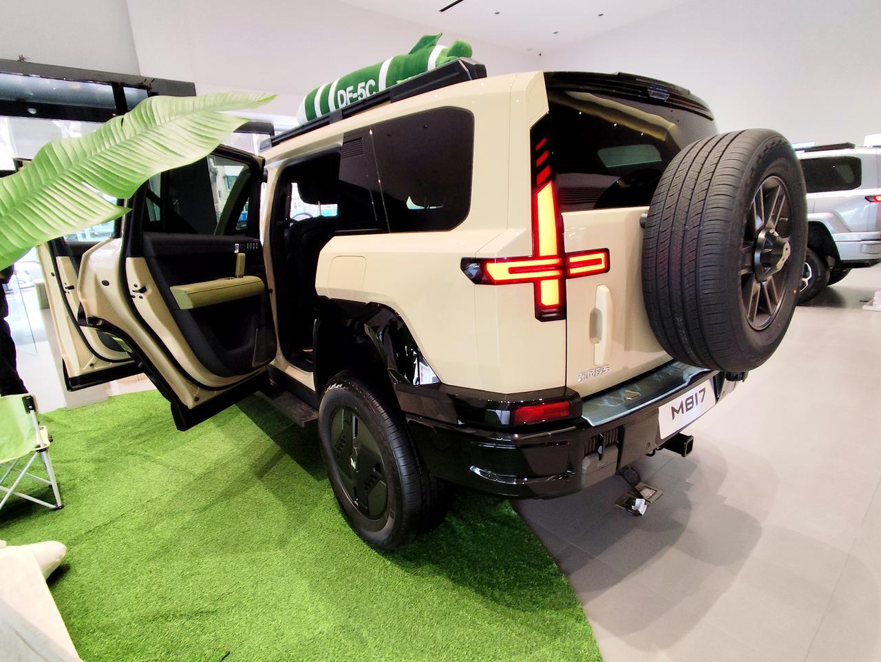 军工品质《猛士M817》 东风汽车旗下,一款豪华越野旗舰猛士M817是与华为乾崑共创新车,也是纯正军车血统民用化的旗舰硬讹SUV。 M817的军车基因,直接源自东风猛士越野平台,军事技术平移: 非承载车身、全时四驱、轮边减速、断开式驱动桥。军2级车身与安全,20环超高强度笼式车身、四纵十横底盘结构;全铝非承载底盘,空气悬架+CDC,离地间隙333mm,可调㐵程150mm等。 (配图拍自《东风猛士-沈阳沈河体验中心》)