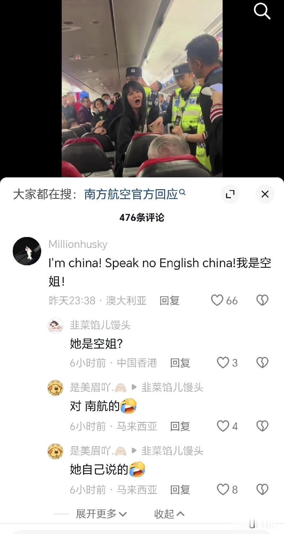 别给南方航空 丢人现眼了 还冒充南航空姐 南航回应:查无此人 一张嘴那个英语水平就暴露了 I'm China[黑线]