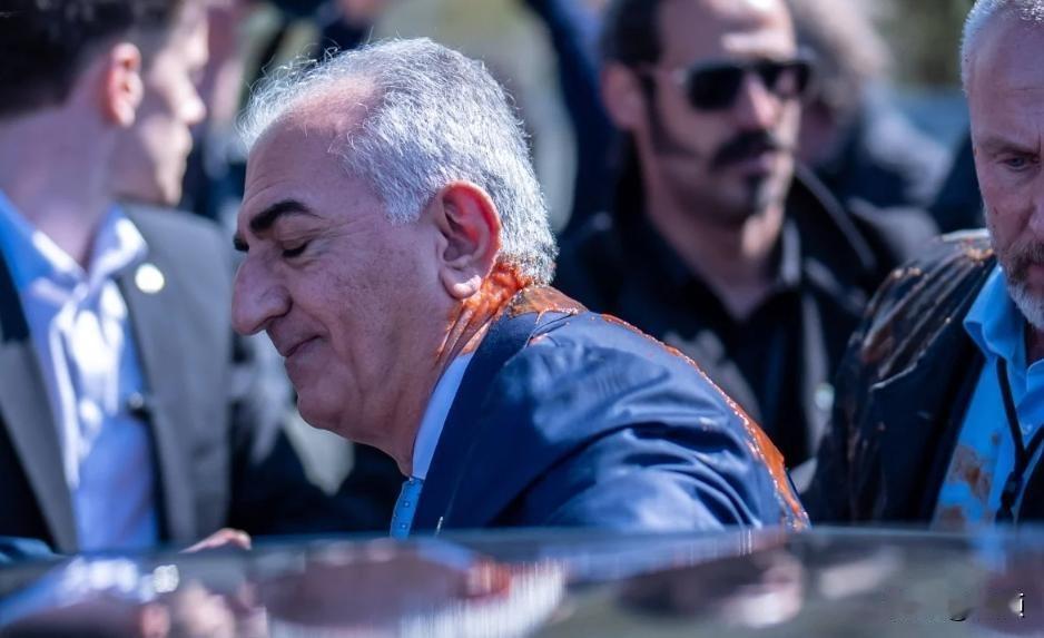 伊朗末代王储礼萨·巴列维的“复辟美梦”,周四在柏林被狠狠浇醒。4月23日(周四),巴列维在柏林联邦新闻大楼开完发布会,正准备离场,突然被一名抗议者冲上来劈头盖脸泼了一身红色液体(疑似番茄汁或红漆),西装后背和脖子全被染红 。