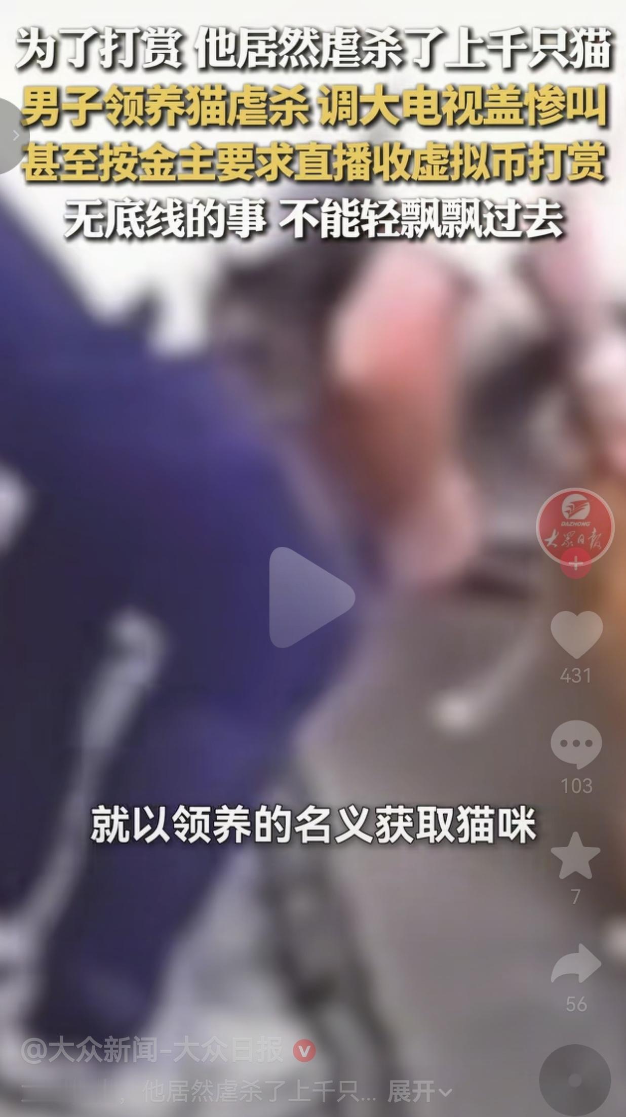 你见过利用好心人善意,把伤害小动物当成牟利手段的吗?河南平顶山马某的所作所为,实在让人无比气愤。 从2022年开始,他就到处打着免费领养猫咪的旗号,专门坑那些爱心人士。 不管是别人精心照顾的宠物猫,还是路边可怜的流浪猫,只要他能骗到手,一个都不放过。 上千只小猫,就这么被他“给你一个温暖家”的谎话骗走,可只要进了他的家门,就再也没能活着出来。 想想都觉得头皮发麻! 每次要作恶的时候,他就特意选在深更半夜,把家里电视声音开到最大,吵得整间屋子都是杂音。 就是为了死死捂住小猫绝望的惨叫声。 一扇门,外面安安静静,门里是小猫撕心裂肺的哀嚎,被电视噪音盖得严严实实。 好好的民宅,被他变成了囚禁小生命的地狱。 更让人恶心的是,他根本不是偷偷摸摸干坏事。 专门混进那些乌烟瘴气的网络圈子,顺着一些人的变态需求,搞直播、收虚拟礼物打赏,靠折磨小猫赚钱。 把一条条鲜活的小生命,当成了他捞钱的工具。 就这么短短时间,上千只猫,全都惨死在他手里,毁在了这条肮脏的利益链里。 网友看到后评论说:看完直接哭崩了!那些送猫的人,满心都是好意,想着给猫找条活路,没想到亲手把猫送进了狼窝,换谁能接受啊! 也有的网友说:开大电视盖叫声,这人的心是石头做的吗?冷到骨子里,一点同情心都没有,根本不配做人! 还有的网友说:我们小区也常有人领养流浪猫,现在想想后背都冒凉气!以后领养真的得上门核实,绝不能再让这种骗子得逞! 更有网友表示:那些花钱看这个的人更离谱,心理扭曲到这种地步,就没人管管吗?必须全都揪出来! 说真的,我看完这些事,气得手都在抖,心里堵得慌,半天缓不过来。 这些小猫多无辜啊,它们什么都不懂,只想有口饭吃,有个能遮风挡雨的地方。 它们信任人类,才会跟着领养人走,可这份信任,却被人狠狠踩在脚下,被当成了行骗的筹码。 所谓的免费领养,从头到尾就是一场骗局;那些打赏的虚拟礼物,每一分都沾着小猫的血。 而且这根本不是个例,网络背后,藏着太多这样漠视生命、糟蹋善良的烂事,想想都觉得心寒。 最让人无奈的是,现在相关部门,也只能以扰乱公共秩序给他立案。 我们还没有更完善的动物保护相关规定,没办法狠狠惩治这种恶行。 上千条小生命就这么没了,却讨不回一个公道,作恶的人,也没得到应有的惩罚。 总有人站着说话不腰疼:不就是一只猫吗,至于这么较真? 我就想问问,连弱小的生命都能随意践踏的人,能有什么底线? 今天能狠心伤害小动物,明天就敢无视别人的痛苦,这份对生命的冷漠,从来都不是小事! 这种恶,绝不能就这么轻易算了! 好在警方已经掌握了16G的完整证据,一直在深入调查,我们所有人都在等一个公平的结果。 我们普通人能做的,就是擦亮眼睛,别让自己的善良被坏人利用,更别用沉默纵容这些阴暗的恶行。 真心盼着相关法规能越来越完善,让所有伤害弱小的人,都付出应有的代价。 也希望每一个小生命,都能被温柔对待,而不是被肆意伤害。 别让善意,成了恶人的通行证;别让沉默,成了阴暗的保护伞。 心存敬畏,善待弱小,才是做人最该守住的底线。